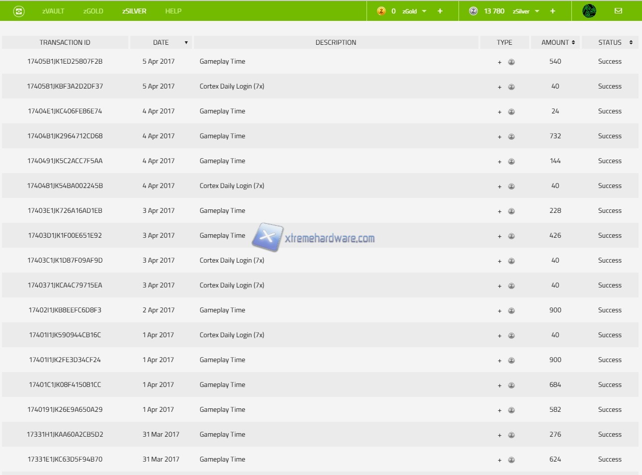 Potrete controllare i zSilver guadagnati direttamente dalla Tab di Razer Cortex o dal sito nel vostro ''History''.