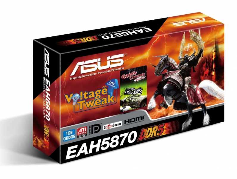 ASUS EAH5870/2DIS/1GD5 e EAH5850/2DIS/1GD5 sono le prime schede video al mondo basate sui nuovi motori grafici ATI Radeon dotate di tecnologia Voltage Tweak che, tramite la funzionalità proprietaria per l’overclocking ASUS SmartDoctor, consente di agire sul voltaggio della GPU, senza la necessità di reboot o reflash del BIOS, per incrementare le prestazioni fino al 38% rispetto alle schede di riferimento e senza correre il rischio di danneggiare l’hardware.