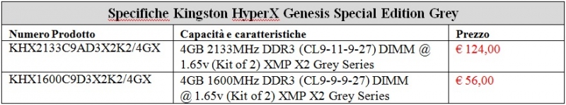 Il CES2011 è stata l'occasione per presentare inoltre un nuovo kit di memorie DDR3 ad elevate prestazioni, il modello HyperX Genesis Special Edition Grey.