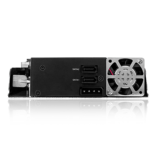 Questo nuovo prodotto dell'azienda tedesca da la possibilità all'utente di alloggiare 2HDD, uno da 3,5" ed uno da 2,5", in uno slot frontale standard da 5,25", collegabili tramite interfaccia Sata con velocità di traferimento massime di 3,0 Gigabit/s, il vano è composto da parti in plastica e metallo ed è raffreddato da una ventola da 40mm.