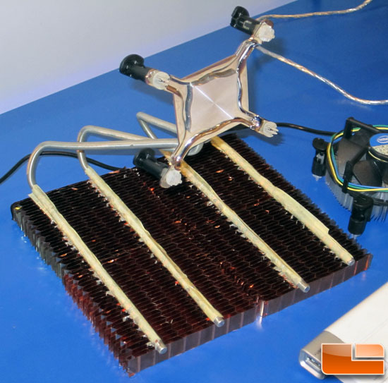 In condizioni di full load (rendering di un'animazione 3D), la temperatura non è risultata molto diversa da quella ottenibile con il dissipatore stock, ma il prototipo ha l'innegabile vantaggio di non avere parti meccaniche in movimento ed un rumore prodotto pari a zero.