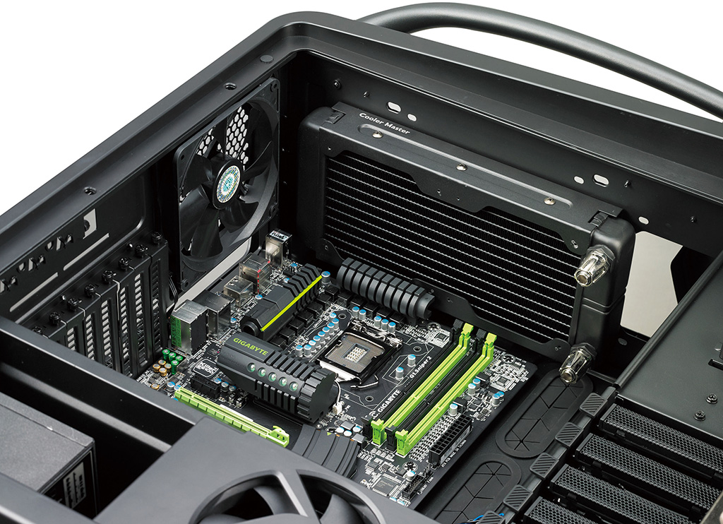 Per gli amanti del watercooling, il Cosmos II può ospitare un radiatore da 360mm sul tetto, uno da 120 o 140 sul pannello posteriore e uno da 240mm lateralmente, rimuovendo il cage per gli hard disk posizionato in basso.