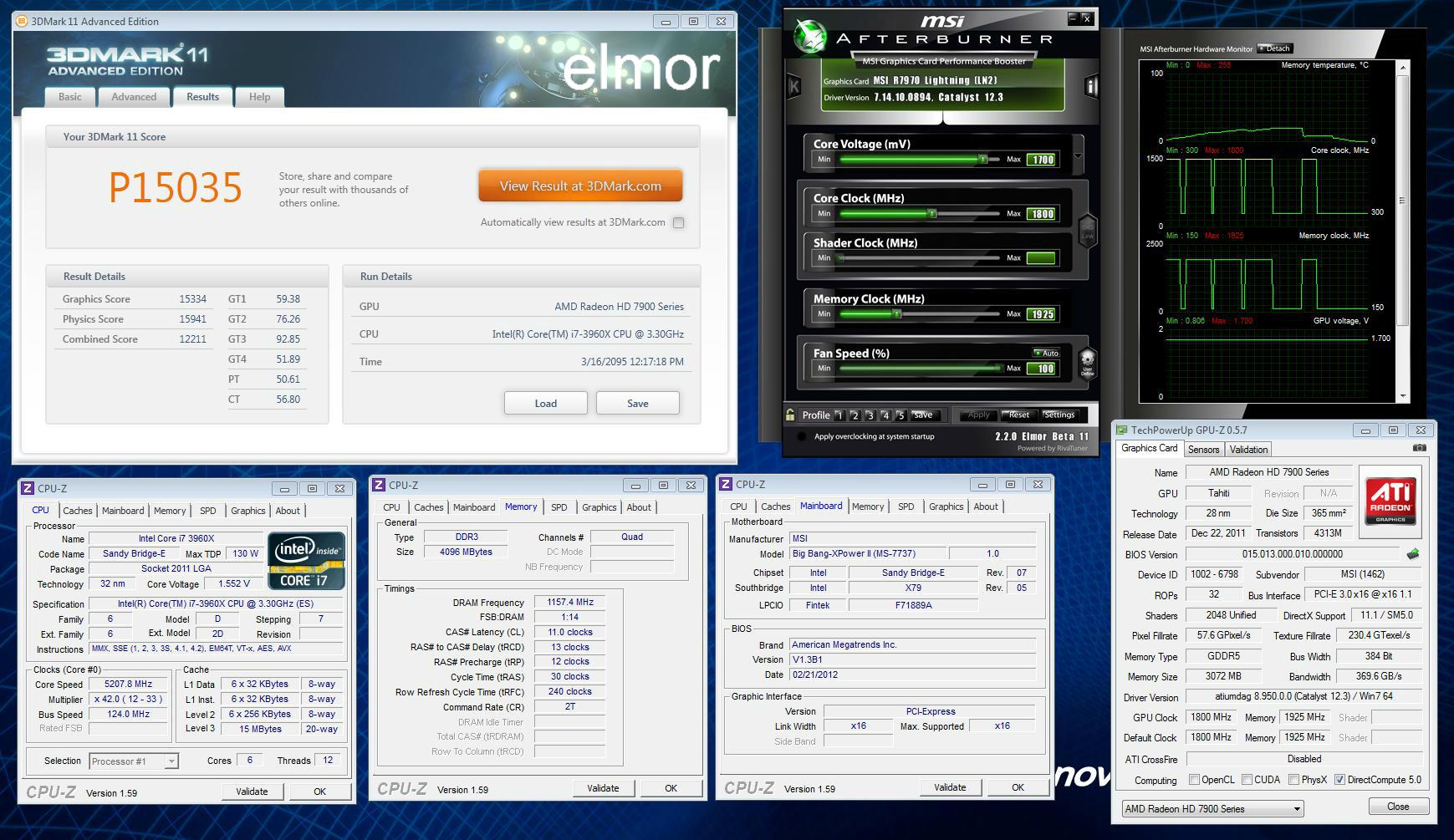 L'elevatissimo risultato raggiunto con il benchmark 3DMark 11, P15035, con CPU Intel Core i7-3960X a 5207 MHz, MSI Bing Bang-XPower II e 4 GB di RAM a 2314 MHz in configurazione quad channel, è molto vicino al record del mondo a singola GPU segnato da Andre Yang (P15063).