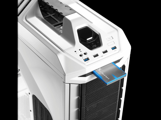 I connettori ed i controllers posti sul pannellofrontale consentono all’utente di modificare al volo lavelocità della ventola e, sullo stesso, sono inseriti iLED, le porte USB 3.0 e 2.0 ed i connettori audio.La sezione superiore frontale viene completata dauna X-dock per HDD/SSD da 2.5” che rendel’alloggiamento di drivers aggiuntivi semplice comecaricare un Blu-ray/DVD:con CM Storm Stryker cambiare le impostazioni inun attimo diventa una semplice formalità.