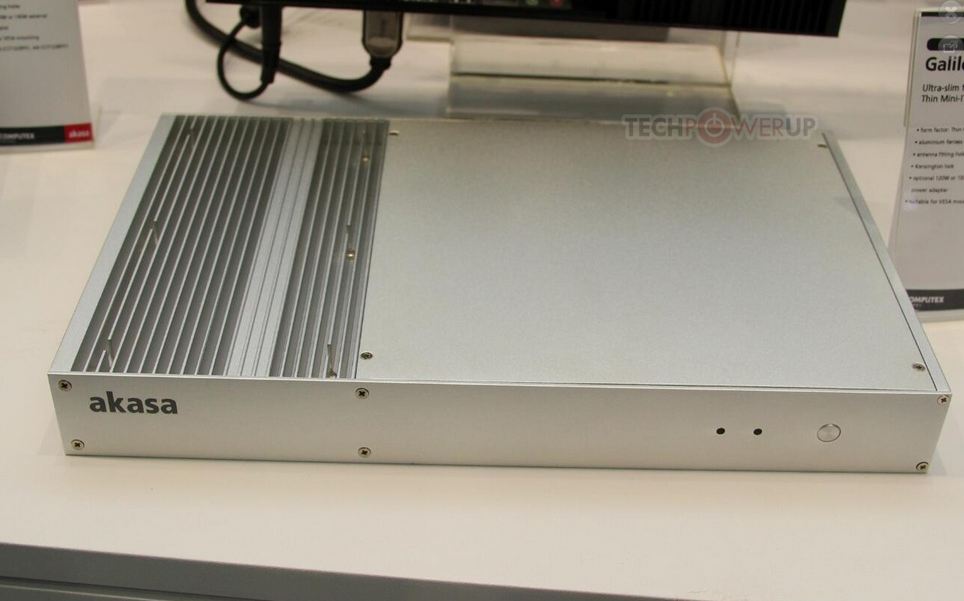 Akasa migliora l'approccio nel mondo della dissipazione passiva su mini-ITX. Questo progetto prevede l'utilizzo di alette in alliminio protruse dal corpo centrale del telaio e posizionate lateralmente, per dissipare passivamente la CPU. E' un design molto particolare perché è la prima volta che viene implementato. Generalmente su questi sitemi si tende a massimizare la compattezza ma in questo caso si è cercato di potenziare anche le capacità dissipanti del sistema, tramite l'adozione di un radiatore particolarmente sviluppato, sebbene però siano presenti due heatpipes; d'altronde c'è da considerare la ridottissima dimensione delle CPU di questa fascia, quindi due heatpipes da 6mm sono il massimo concepibile, e possibile. Anche qui ovviamente è presente il sistema di montaggio posteriore "VESA" ed è incluso un alimentatore esterno da 120W o 180W. Interamente fatto in alluminio, Galileo sarà disponibile nelle colorazioni Nera ed Argento.