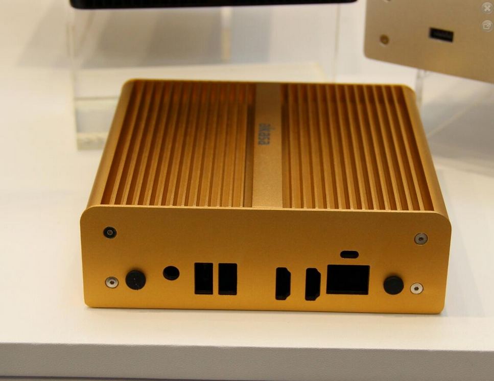 Altra novità per Akasa, per quanto concerne i cabinet NUC perché è stata presentata la serie Newton. A marzo di quest'anno è stata presentata la serie Galileo ma nell'occasione del Computex è stata presentata questa nuova linea produttiva, comprendente tre modelli: nera, oro e argento, tutte realizzate in alluminio anodizzato. Questi modelli ovviamente, supportando lo standard NUC Intel, sono di dimensioni particolarmente compatte ma è interessante menzionare il fatto che il modello Newton raddoppia lo spazio per il dissipatore dell CPU. I cabinet saranno disponibili nelle varianti che supportano il layout dei connettori D33217GKE e D33217CK. Data la tipologia non potevano mancare le caratteristiche "Kensington lock", ed ovviamente il montaggio "VESA".