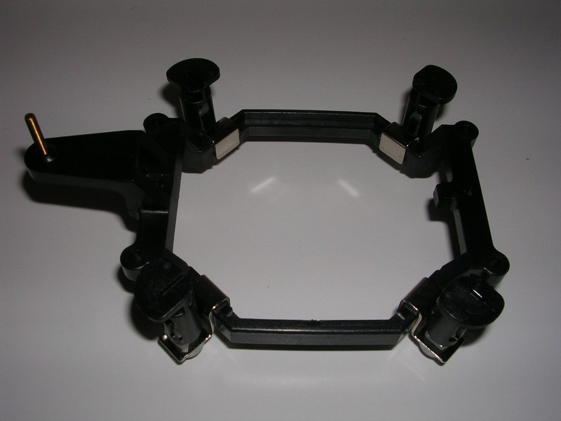 Il montaggio di questo dissipatore è davvero particolare. E' previsto infatti un particolare sistema di fissaggio che va a ricreare un castelletto simile a quello di casa AMD. Questo castelletto è realizzato con un quadrato di plastica su cui vanno infilati quattro push-pin (del tutto simili a quelli del dissipatore stock intel) con cui agganciarlo alla scheda madre. Una volta posizionata la pasta termica sul processore, il dissipatore va agganciato a una parte del castelletto e poi fissato alla vite che fuoriesce dall'altra estremità del castelletto, il tutto grazie a una particolare staffa basculante fissata sulla sommità della base. Sebbene questo procedimento sembri piuttosto macchinoso, l'installazione non richiede moltissimo tempo ed è abbastanza facile tecnicamente richiedendo l'utilizzo si una sola vite (o meglio un bulloncino con testa a croce). Anche il sistema di ancoraggio sembra buono e dovrebbe garantire un buon contatto tra cpu e base del dissipatore. Unica nota stridente è sull'estremità del castelletto che sporge e che serve ad avvitare la staffa. Durante le fasi di montaggio infatti questa parte andava a toccare sui dissipatori del chipset o dei mosfet intorno al socket e non si riusciva ad agganciarlo alla scheda madre tramite i push pin. Alla fine piegando un po' il dissipatore dei mosfet a nord del socket siamo riusciti a installare correttamente il castelletto. Il problema come si può notare anche dalla foto non è l'altezza ma lo spazio esiguo in larghezza intorno al socket.