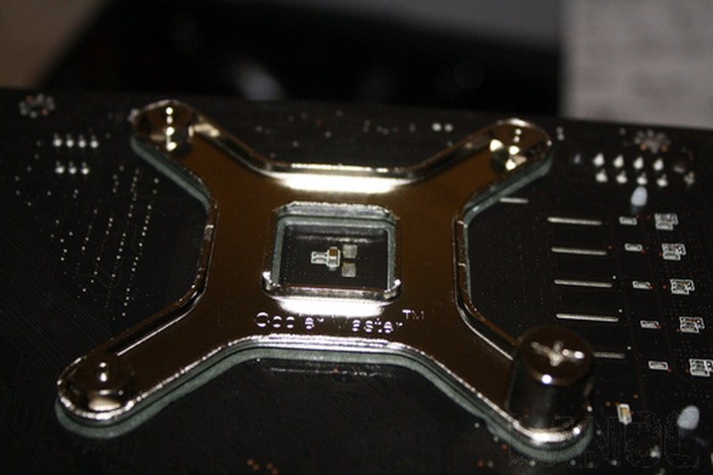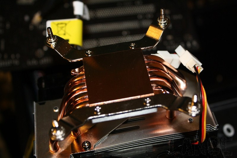 La base di rame è liscia e lucida, molto piatta, molto vicina a una finitura a specchio. Dalle foto si possono anche osservare le cinque serie di heatpipes che trasportano il calore proveniente dal processore verso le alette in alluminio dove è creato il flusso d'aria dalle due ventole.