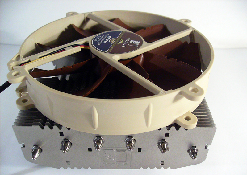 Il Noctua NH-C12P è costruito in alluminio, mentre la base e le heatpipes sono di rame. Ben 6 sono le heatpipes da 6mm  raffreddate dalla ventola NF-P14 FLX (recensita qui). Grazie al suo particolare design, l’NH-C12P permette di raffreddare non solo la cpu, ma anche i componenti adiacenti al dissipatore. Le dimensioni non sono certo contenute: 90*126*152mm senza la ventola e 114*140*152mm con la ventola montata. L’altezza contenuta (114mm) permette però di installare il dissipatore anche nei case più stretti, senza il pericolo di arrivare troppo vicini alla paratia laterale. I socket compatibili sono LGA 1366, LGA 1156, LGA 775 per Intel e AM2, AM2+, AM3 per AMD. Noctua applica ben 6 anni di garanzia a questo prodotto, utile più per la ventola che per il dissipatore in sé stesso.