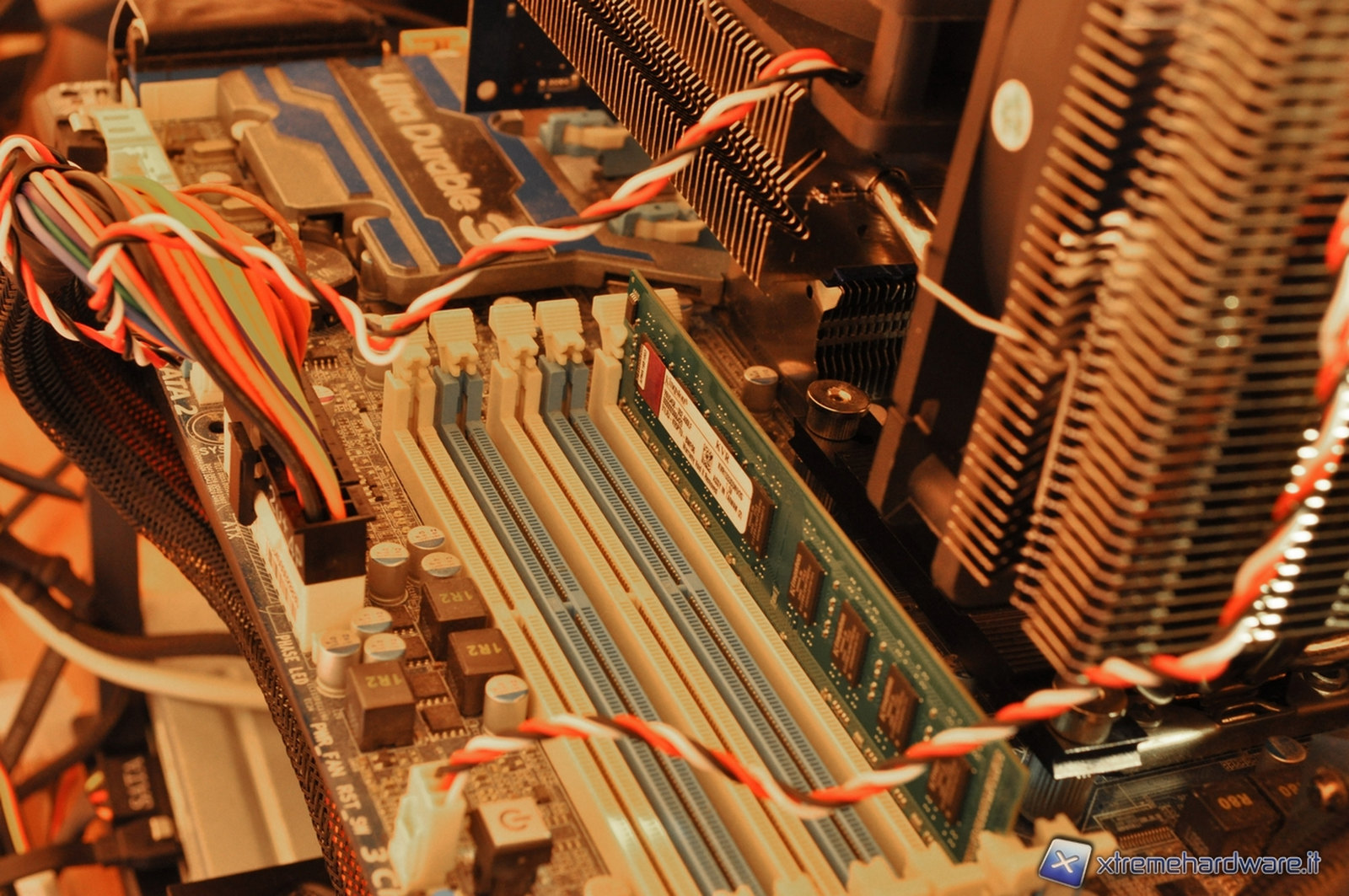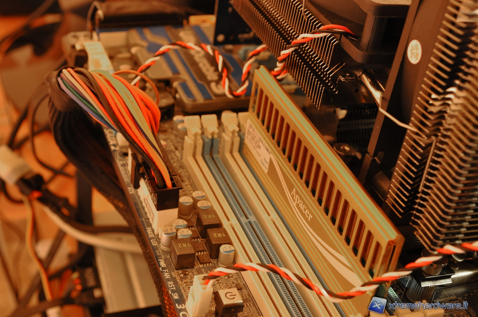 Nella prima immagine, è possibile notare come installando un qualsiasi banco di memoria a basso profilo non ci siano problemi di spazio fra il dissipatore e la RAM. Il banco di RAM della Apacer, misura 52,65 mm e non ci è stato possibile installarci sopra il dissipatore. Memorie leggermente più basse, come ad esempio le Corsair DHX, riescono ad inserirsi con precisione chirurgica. Per non incorrere in eventuali problemi di compatibilità, si consiglia di disporre il sistema con banchi dal basso profilo o con un’altezza massima di 52 mm.