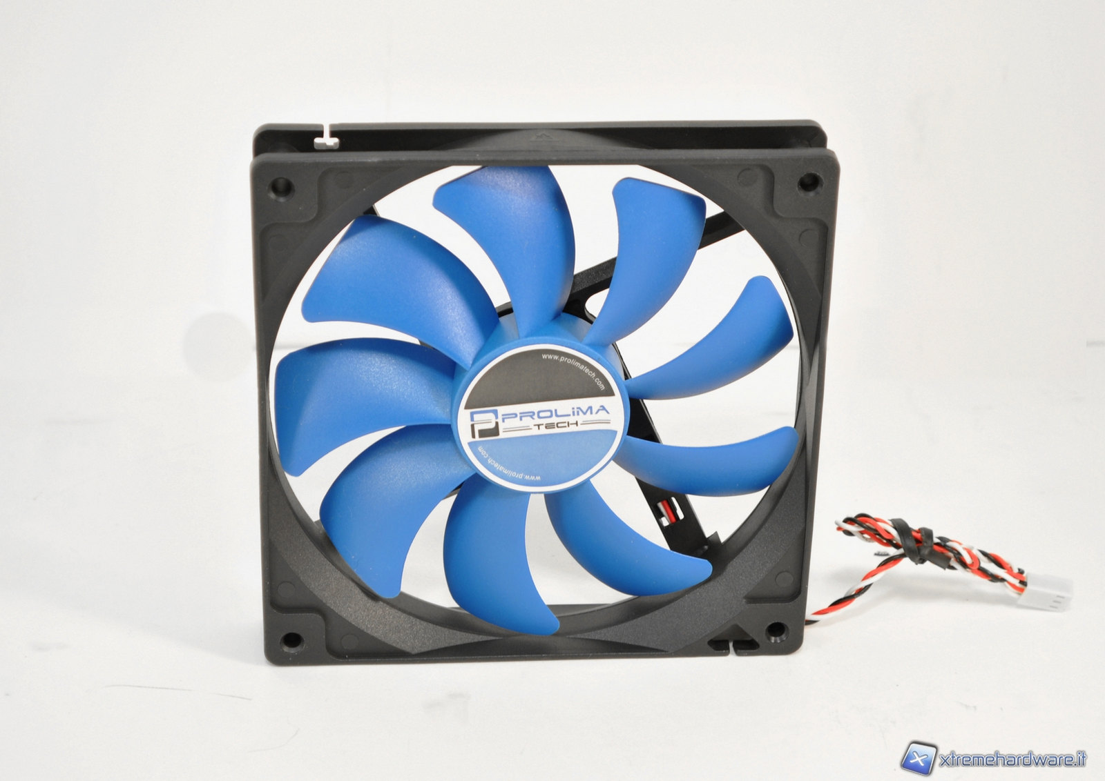Le ventole si presentano con un look raffinato neicolori, nero per il corpo in ABS e blu per le 9 pale. Le ventole si montano sul dissipatore grazie a delle clip metalliche, evitando così di utilizzare viti o gommini.