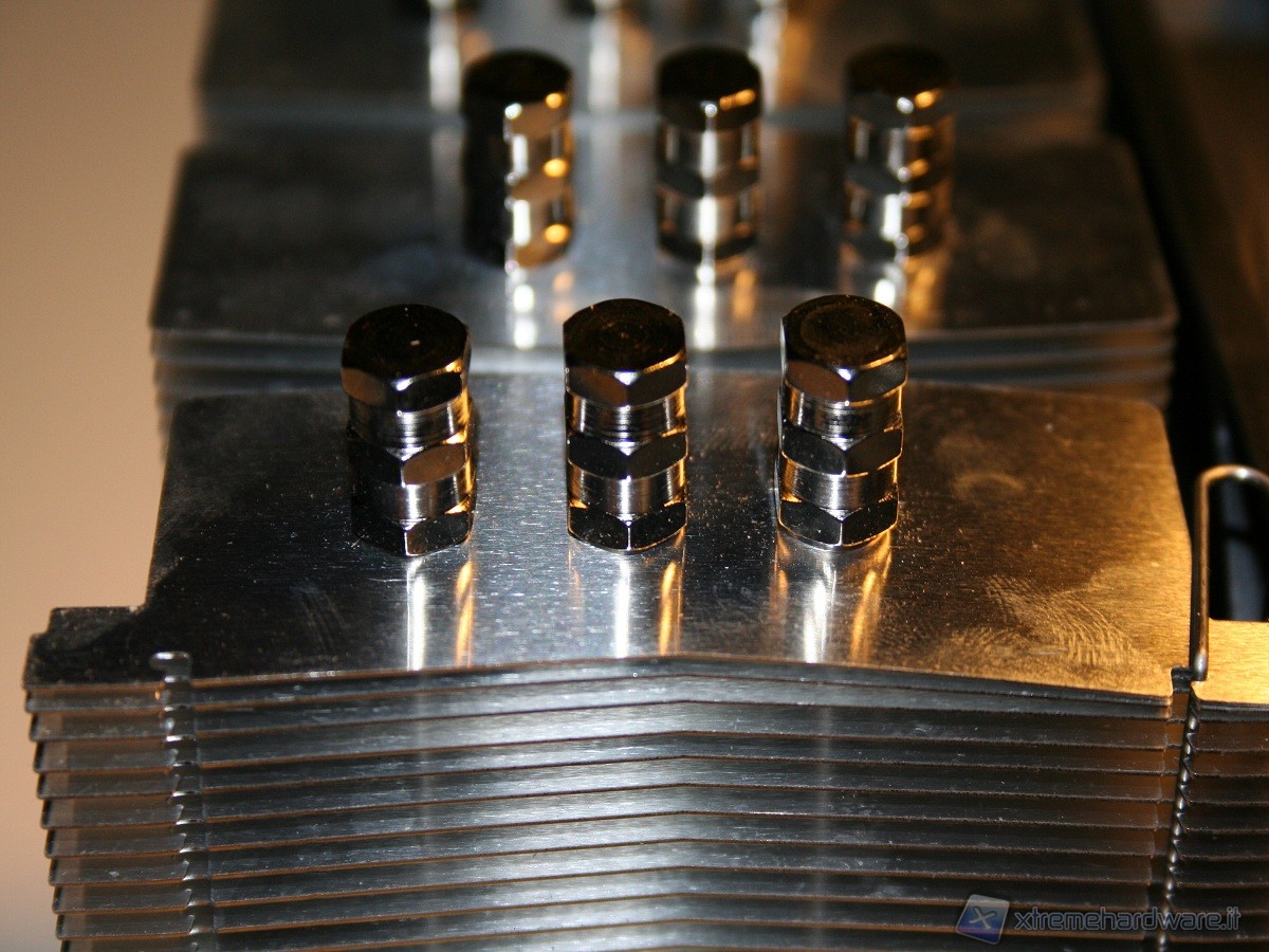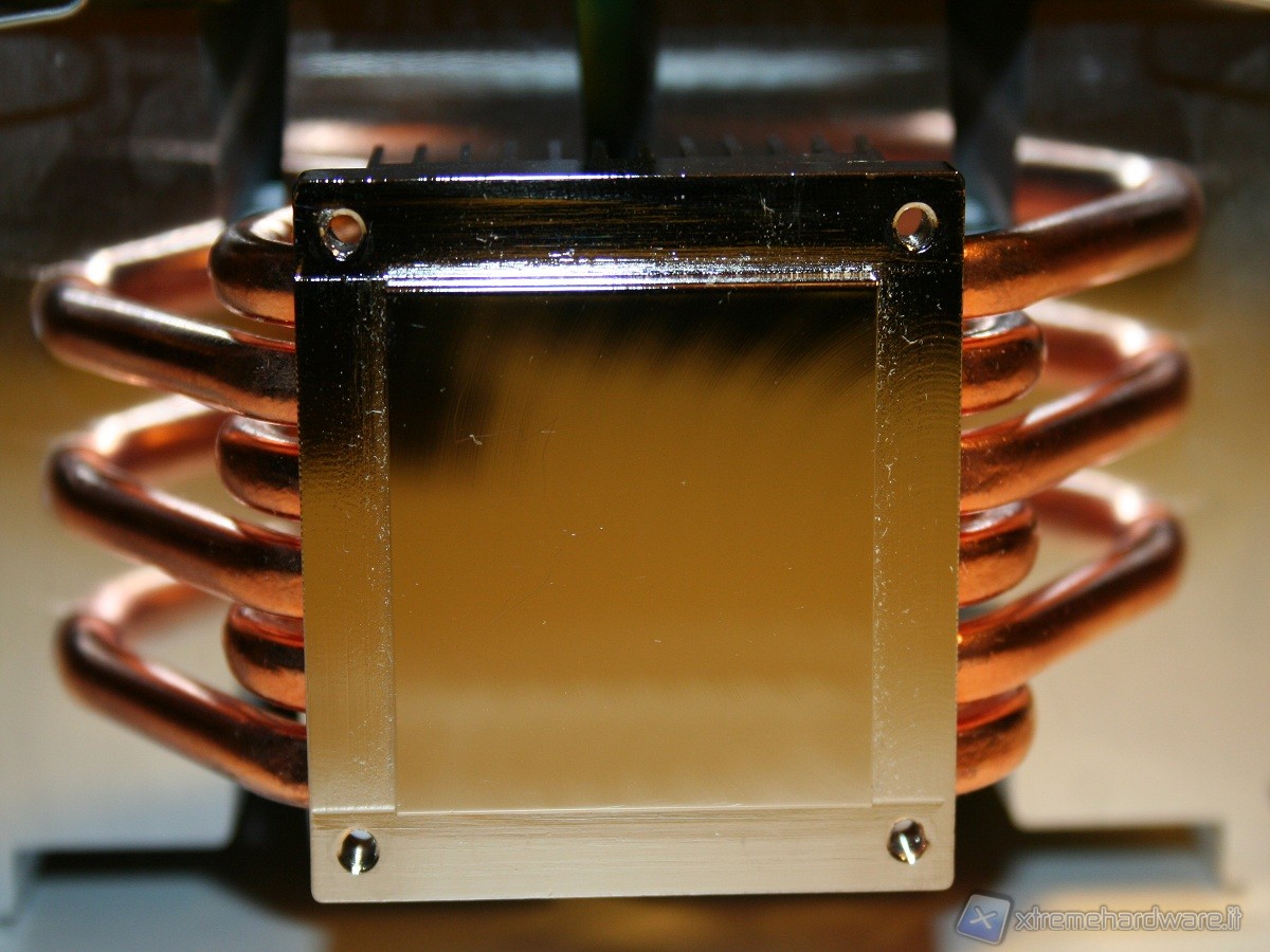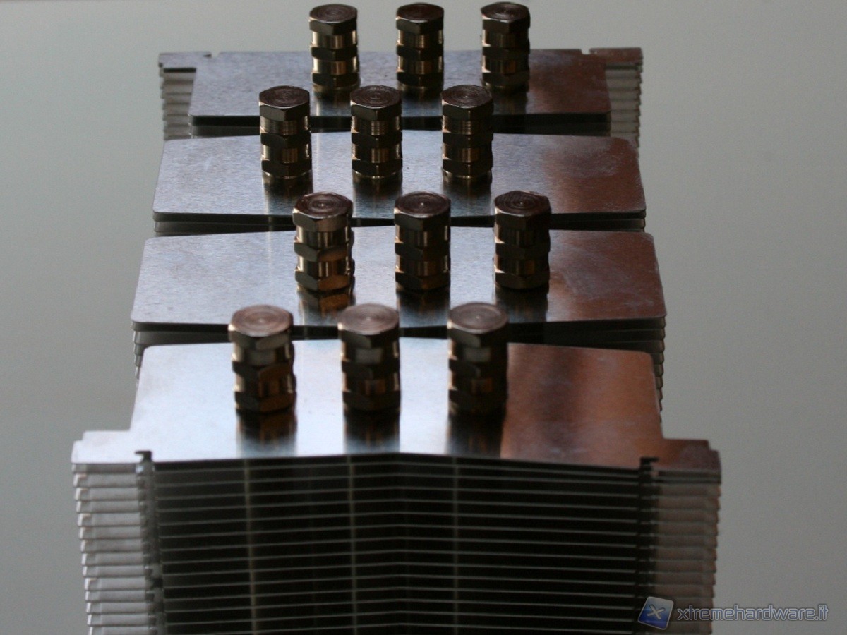Non sono presenti gommini antivibrazione sulla ventola ed il dissipatore non è stato concepito per migliorare la dissipazione né delle componenti onboard della scheda madre, né delle RAM, ma questa è una peculiarità di tutti i dissipatori a torre il cui obiettivo è di massimizzare l’efficienza del dissipatore sfruttando i flussi d’aria interni del case. Notiamo infine che la ventola è leggermente distaccata, nella parte centrale, dal corpo dissipante, questo, insieme al motore di ridotte dimensioni della ventola Slip Stream, permette un flusso omogeneo nel corpo dissipante, evitando il classico vuoto d’aria nella parte centrale dovuto al “cono d’ombra” del motore.