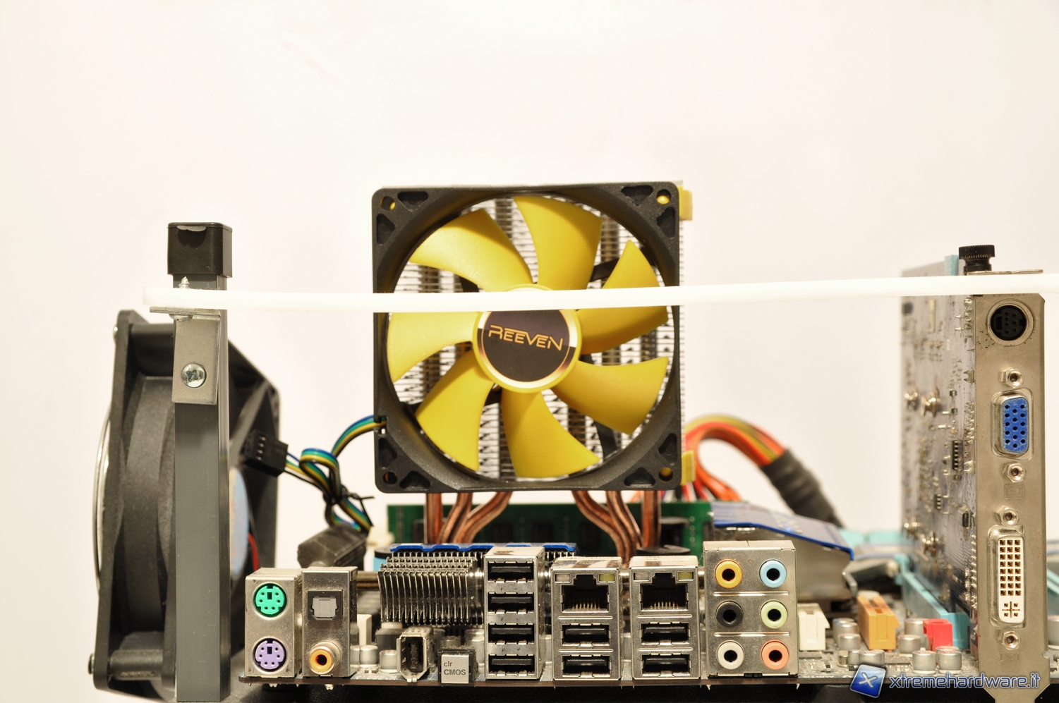 Il montaggio del dissipatore su piattaforma Intel risulta essere semplice ed immediato. Basterà semplicemente avvitare al dissipatore le due piccole piastre che sorreggono i quattro pin da inserire nei fori della scheda madre. Una volta avvitate, basterà semplicemente fare pressione sui quattro pin affinché si incastrino nei fori predisposti della scheda madre. Durante questa operazione fate attenzione all’orientamento dei push-pin; la scanalatura per il cacciavite deve essere orientata radialmente rispetto al dissipatore.  Come si può notare dalle immagini il Chrono Guard non interferisce con gli slot della RAM, consentendo l’installazione di 6 banchi.