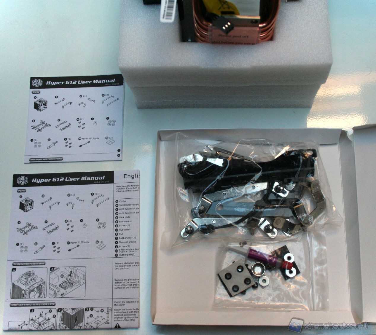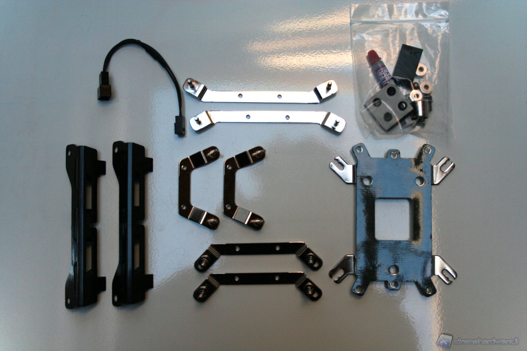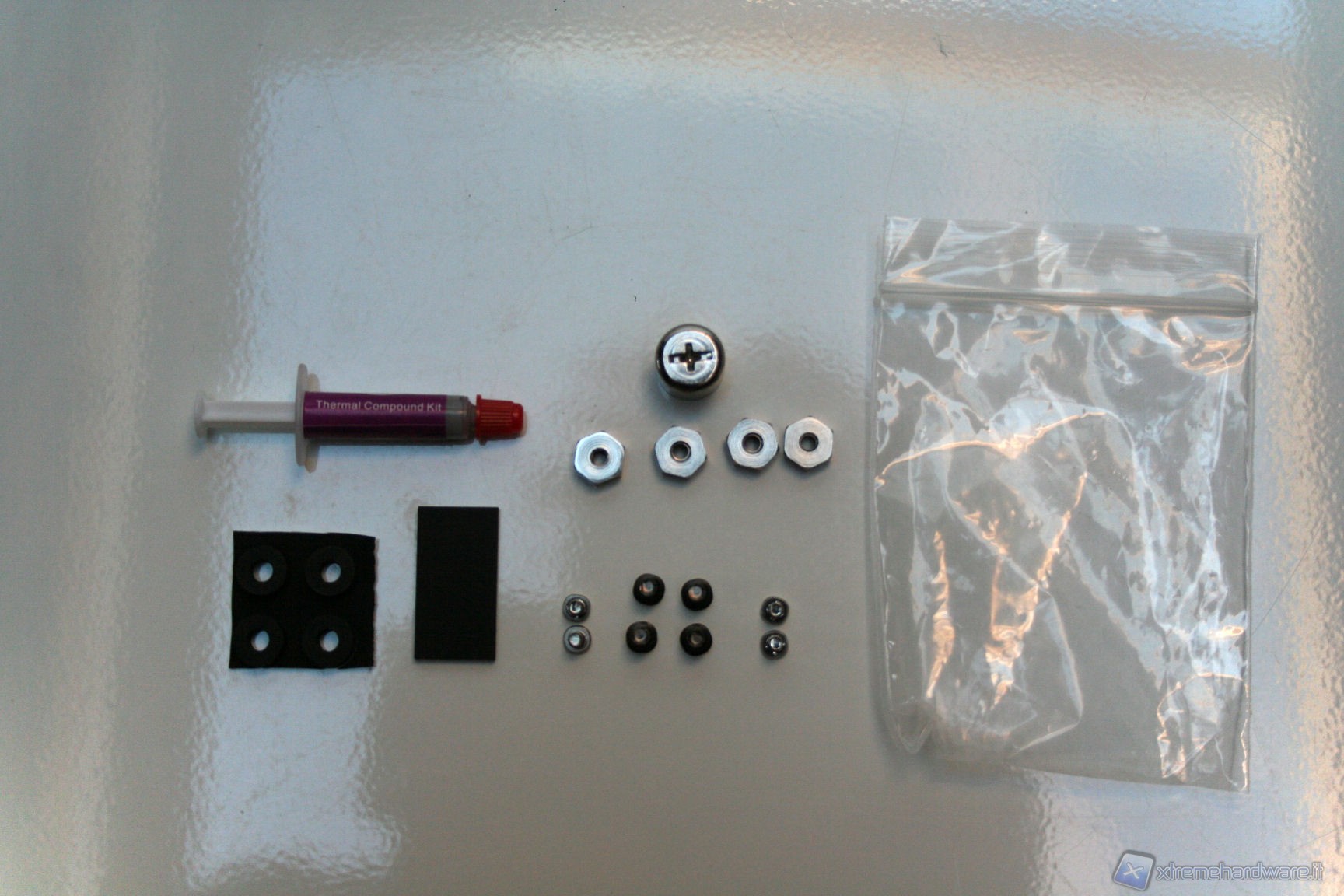 La confezione esterna si presenta come una classica scatola quadrata con colorazione bianca / viola, con tutte le principali informazioni dettagliate esterne, schematiche inerenti le dimensioni, foto diretta del prodotto e breve lista dei punti chiave di questo dissipatore. Aprendo la parte superiore troviamo la scatolina bianca contenente il bundle al disotto della quale troviamo il dissipatore stesso, con la ventola già montata all’interno del suo kit di montaggio. Il backplate presente nel kit di installazione è universale.