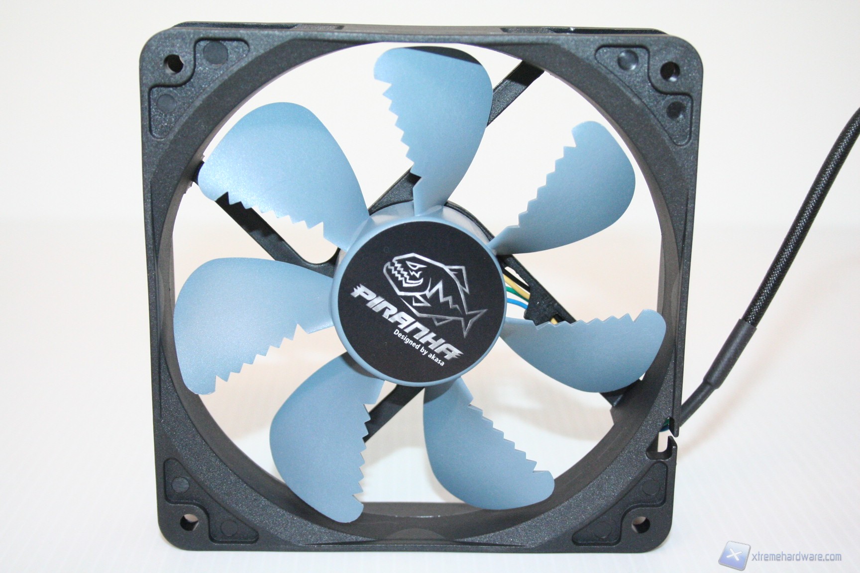 Le ventole Air Ripper Piranha sono caratterizzate da una struttura che presenta delle peculiarità decisamente marcate, una tipologia delle pale classica ma potenziata, ed un motore di ottima qualità, che unito alla Pulse Width Modulation (PWM), permette una fine regolazione della rotazione per minuto. La presenza di sette pale può sembrare riduttiva, se paragonata ad alcuni modelli della concorrenza, però la loro struttura, unita a dei dettagli tesi a migliorare i CFM e la pressione statica, permettono di aumentare il flusso d’aria generato dal movimento rotazionale del motore, il quale presenta un MTBF di 50.000h. L’aspettativa di vita di queste ventole è quindi elevata, superiore allo standard di circa 30.000h, e ciò è dovuto all’adozione di un sistema di rotazione di tipo Hydro Dynamic Bearing. Il motore presenta un diametro standard e non è stata curata quindi l’ottimizzazione laminare, che generalmente tende ad evitare la creazione di una piccola zona morta proprio sotto il bordo superiore del motore stesso. Questo porterà ad un leggero peggioramento dei CFM, in relazione al frame, con angoli netti che di fatto tagliano il flusso d’aria e ne impediscono l’inserimento in prossimità del centro della ventola. Si presentano con un telaio in ABS, avente una tipologia standard, ma pale “Air Ripper”. Il corpo della ventola è di colorazione nera mentre le pale sono in blu ardesia chiaro. Non è possibile staccare queste ultime dal corpo principale.