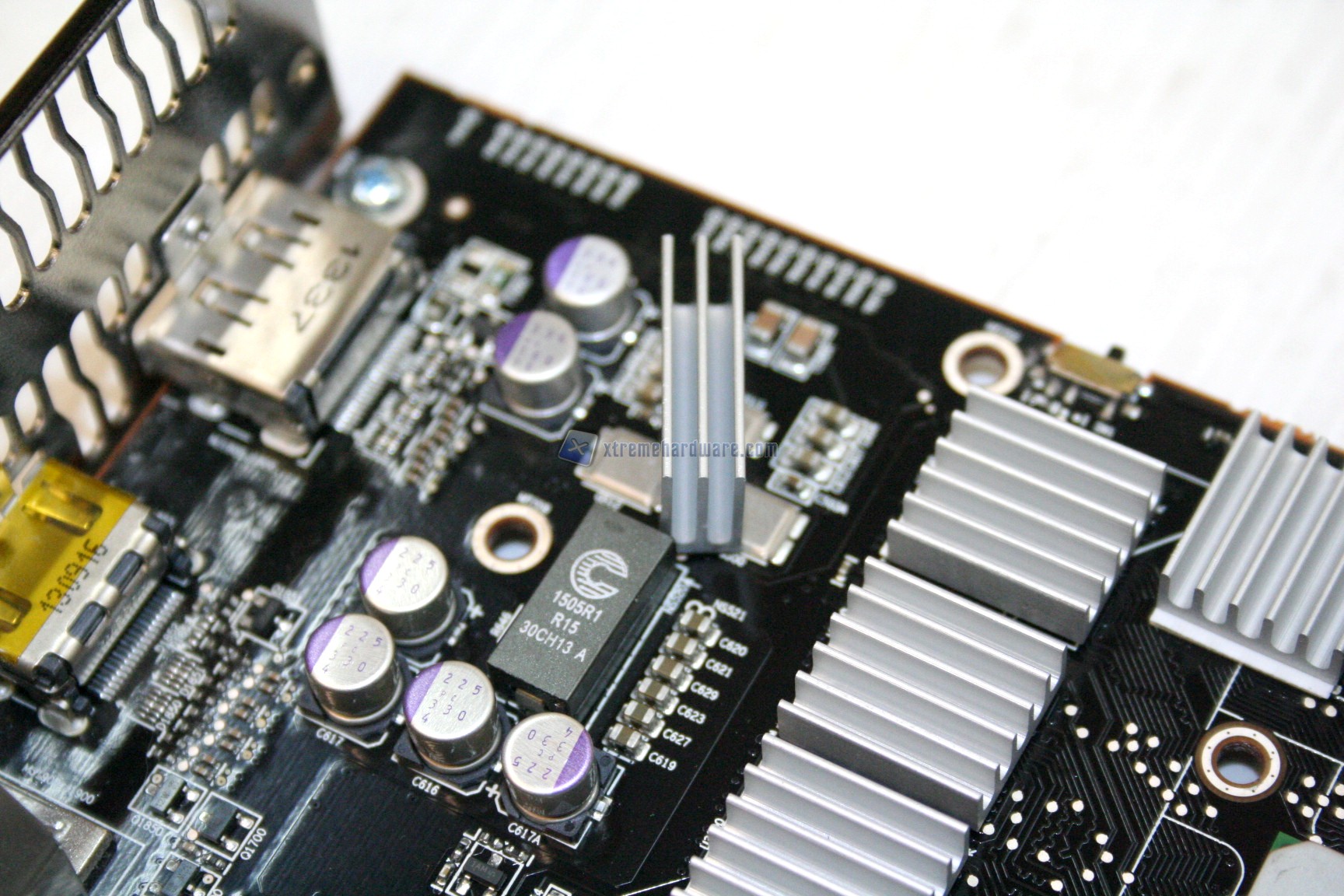 5. Tre chip presenti sulla sinistra, in alto, ovvero la fasi di alimentazione dedicata alle VRAM.