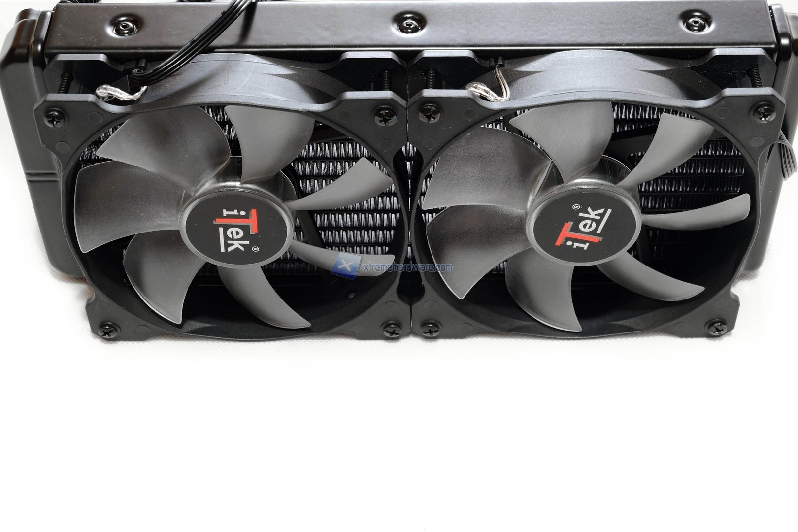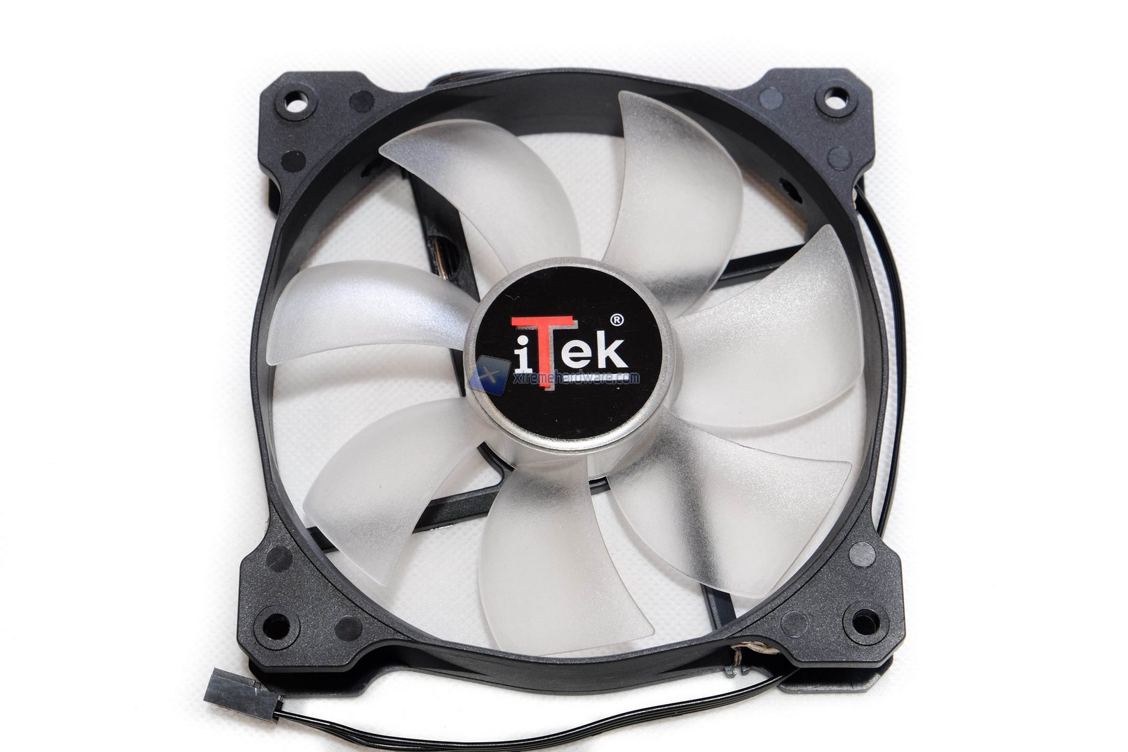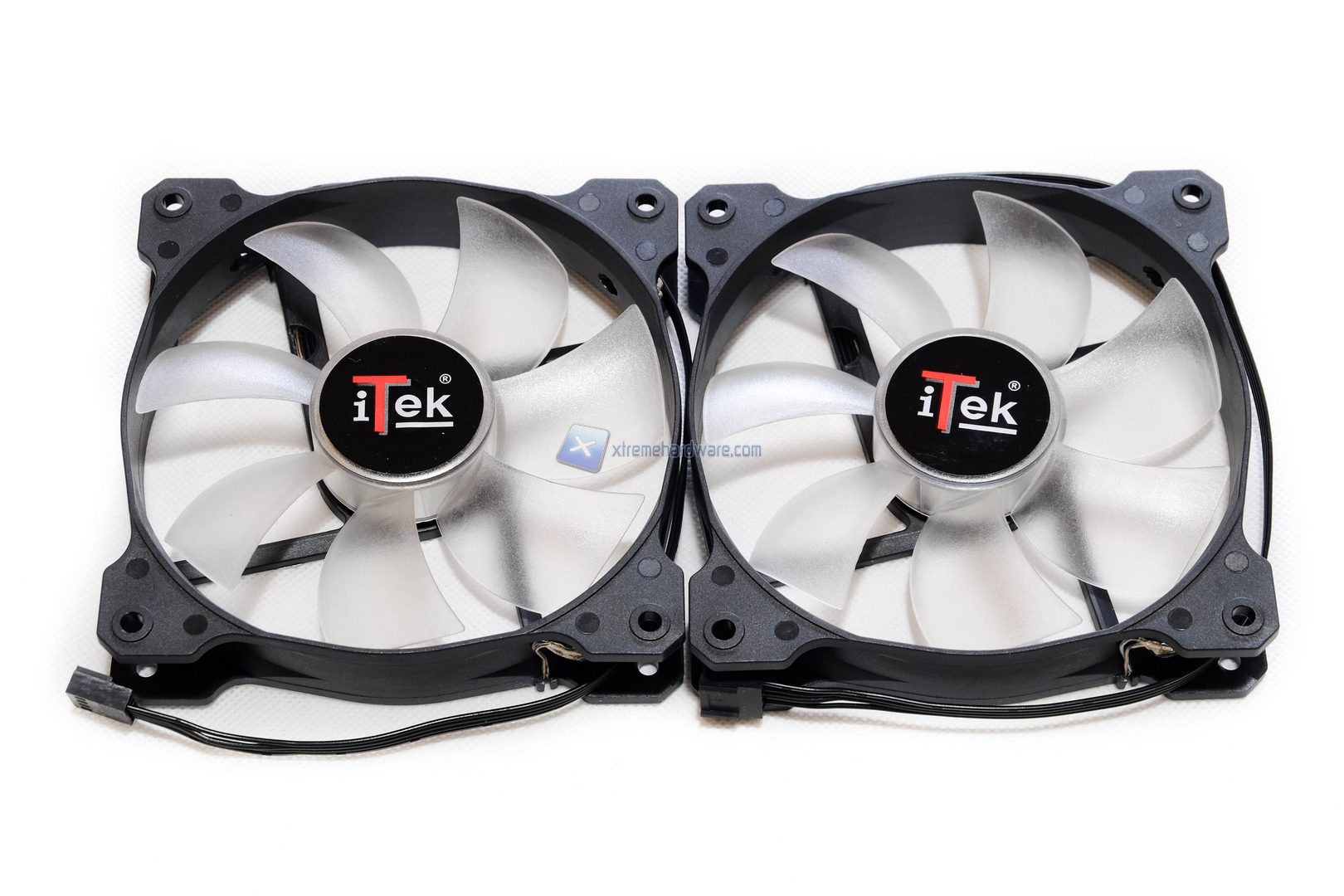 Prima di passare alla fase di montaggio analizziamo velocemente le due ventole incluse nel bundle. Con questo dissipatore vengono fornite due ventole marchiate Itek da 120 mm PWM e dotate di 4 led rossi. Troveremo il frame di colore Nero e le 7 pale di colore trasparente. Non manca un adesivo Itek nella parte frontale. Il design è classico ma, almeno dai dati di fabbrica, le prestazioni si attestano su buon livelli, ossia un flusso d’aria di 98 CFM e 3 mmH²O di pressione statica a 12V. Sono ventole a 12Velocità massima di circa 2500 RPM e una portata di 71 CFM.