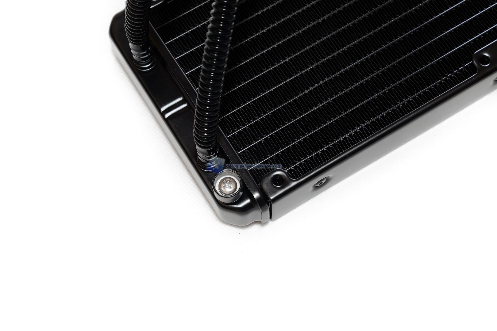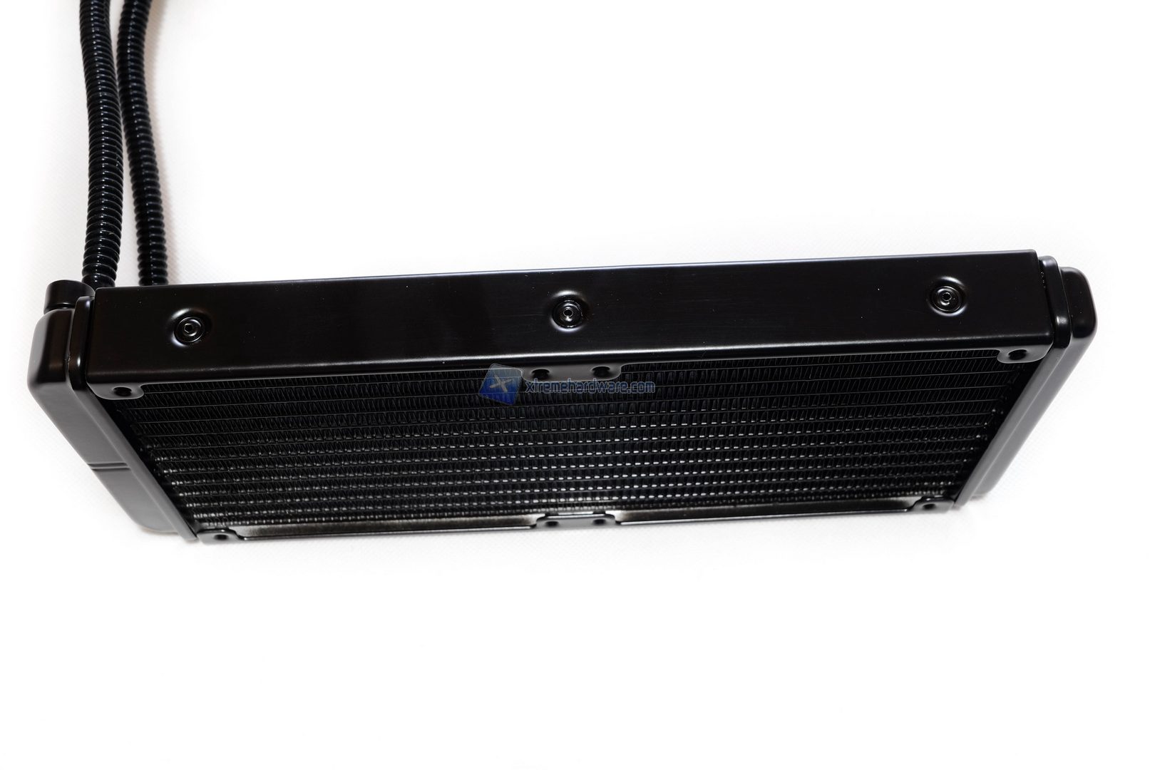 Nella parte inferiore del radiatore troviamo installati i due tubi in FEP e una vite per svuotare il loop in caso ce ne fosse necessità. I lati sono completamente planari e non presentano alcuna peculiarità. I tubi come abbiamo detto sono realizzati in FEP con diametro di 10 mm, meno belli rispetto a quelli in gomma ma sicuramente molto meno rigidi e di conseguenza più facili da adattare all’interno del nostro case. Infine la loro lunghezza è di circa 35 cm, davvero lunghi.