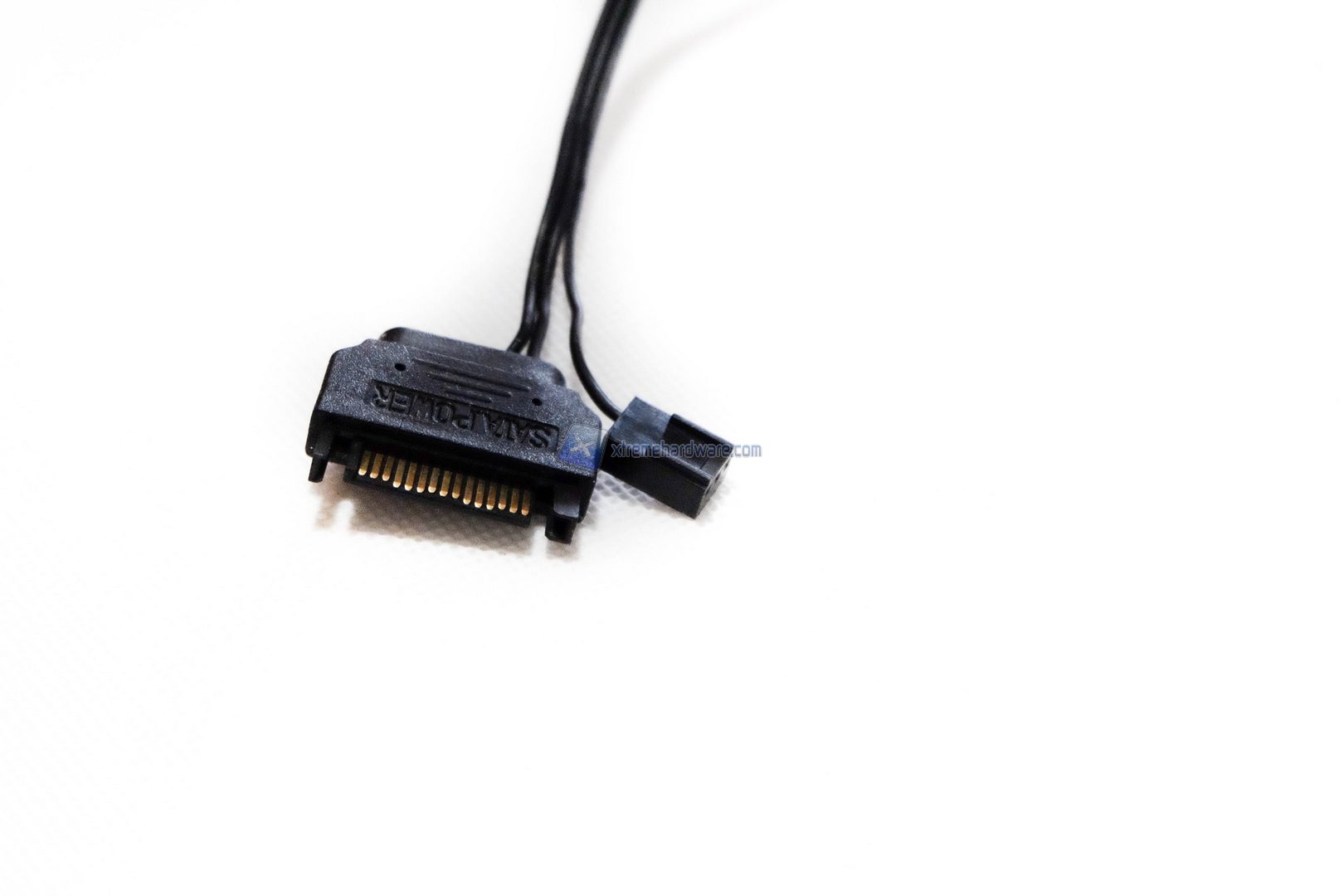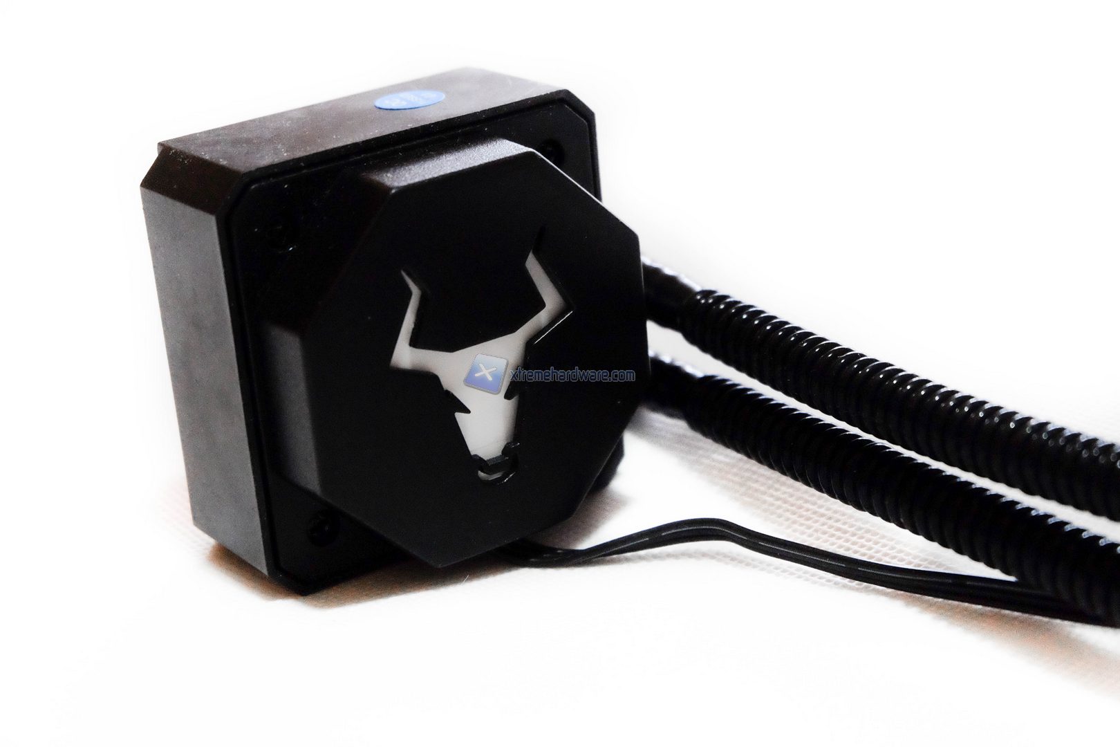 Il waterblock non presenta connettori particolari, come ad esempio porte USB per eventuali software di gestione, infatti l’unico cavo presente è quello di alimentazione, composto da un connettore sata per il power ed un 3-pin per leggere la velocità di rotazione della pompa, che si assesta sui 3000 RPM grazie all’uso di cuscinetti in ceramica. I tubi non trovano una collocazione superiore, bensì laterale quindi dovremmo far attenzione se vogliamo installare tale dissipatore con un particolare orientamento in quanto potremmo riscontrare incompatibilità con Ram.
