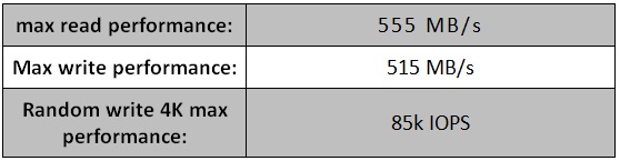 As you can see from the table, the performances are very respectable, about twice the SATA II SSD and above those seen with a few SATA III SSD. Also we mention the high number of IOPS, well 85,000.