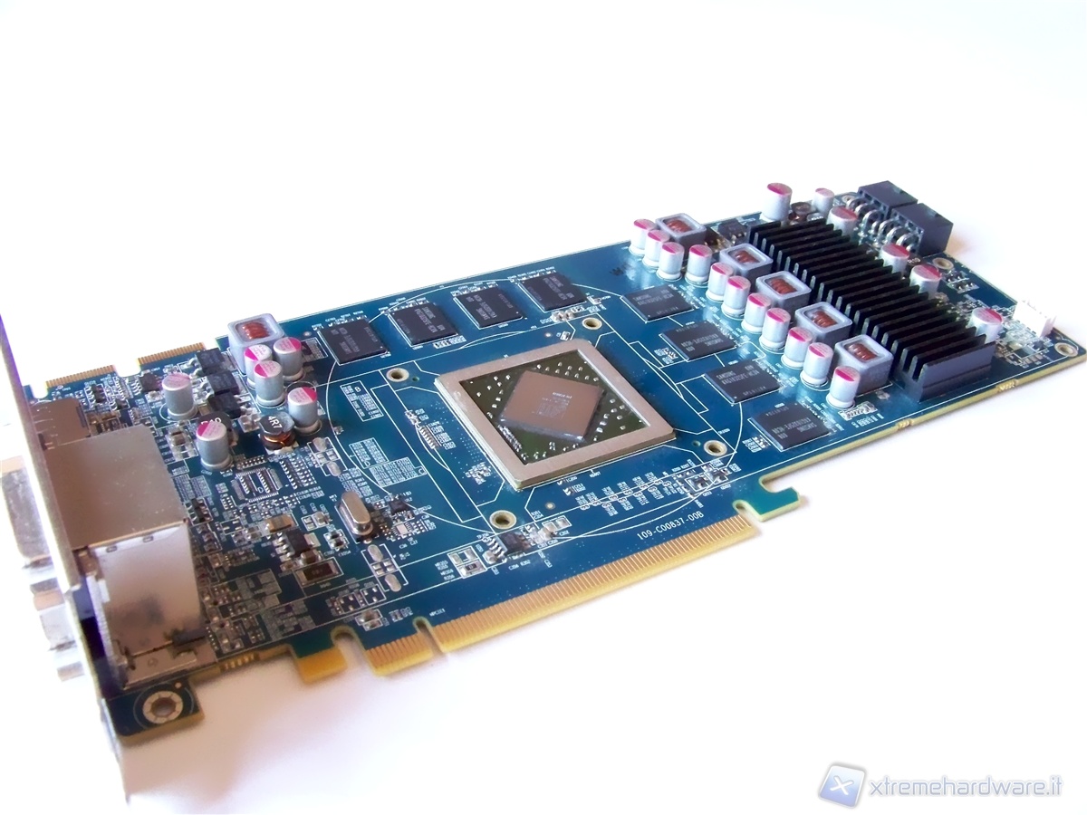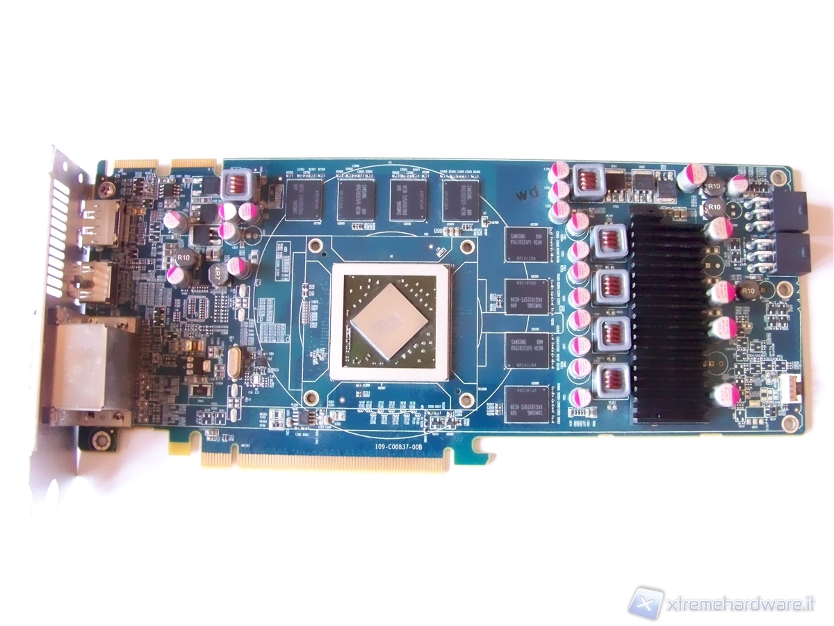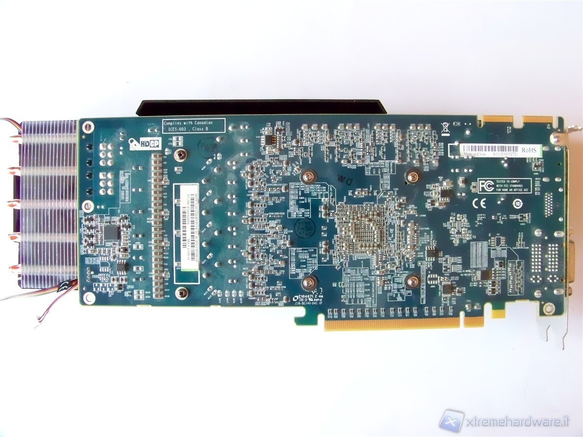 Let's proceed with the removal of the stock heat sink that came with the card; the operation is simple and fast. Simply unscrew the four spring screws on the back PCB of the card and unplug the 4-pin fan connection. After this we find ourselves in front of the video card without heat sink and with the GPU in sight.