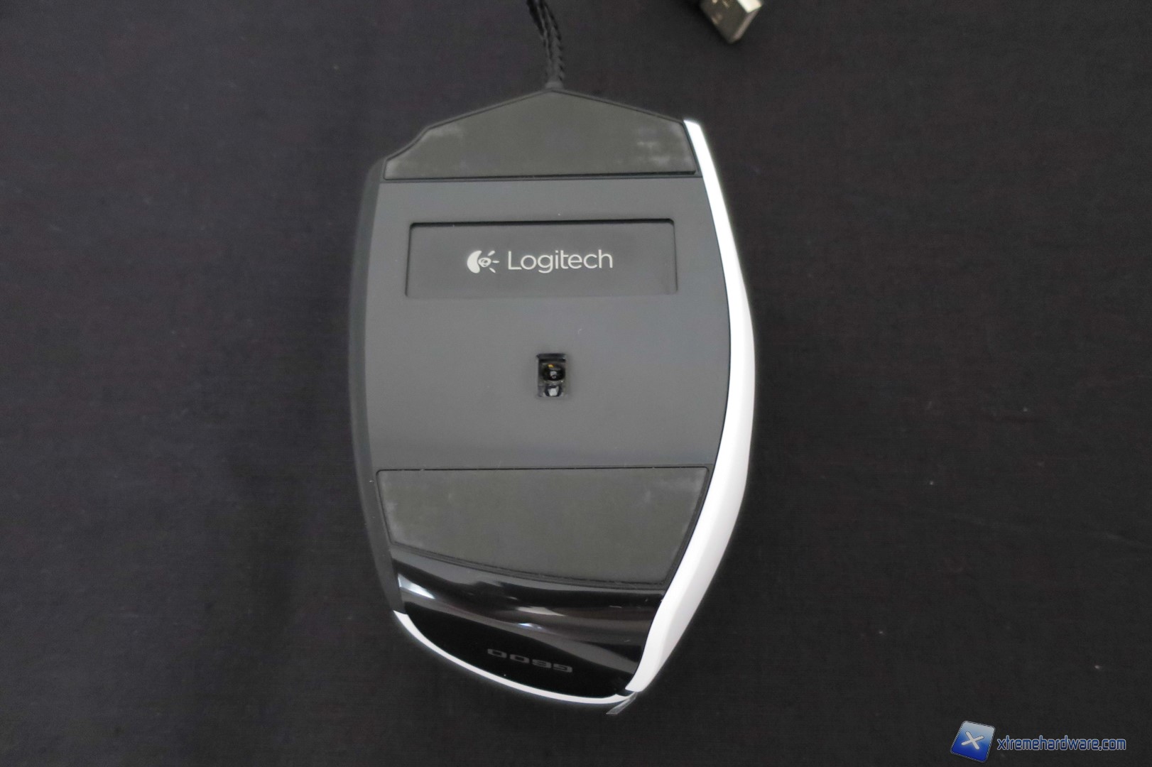Capovolgendo il mouse invece troviamo una superficie quasi lucida caratterizzata da due semplici mousefeet posti nella parte superiore e in quella inferiore oltre al logo Logitech ed al sensore laser posto al centro dello stesso. Ricordiamo ancora una volta l’adozione da parte di Logitech di una versione modificata dalla stessa del modello AVAGO ADNS-9800. Nel Logitech G600 trova dunque posto un sensore laser modello S9808 di produzione AVAGO ma modificato da Logitech.