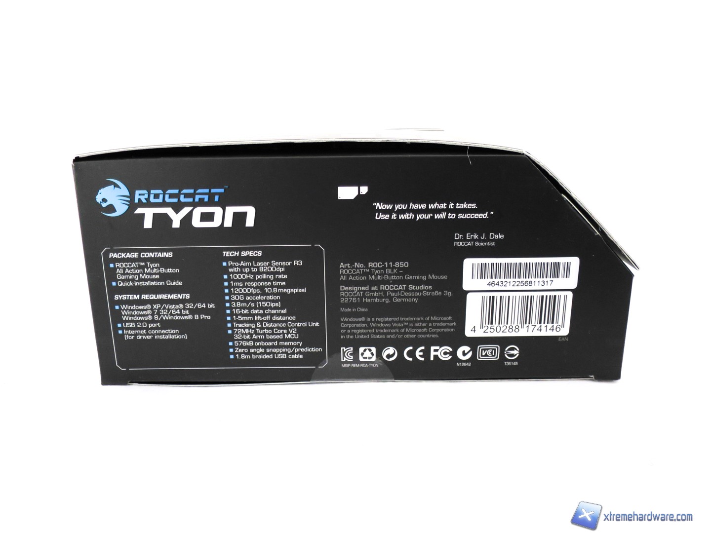 Il Roccat Tyon come ogni altro prodotto di Roccat, come abbiamo visto pochi giorni fa con le Kave XTD Stereo, è ricco di informazioni e immagini stampate in ogni lato della confezione. Ovviamente potremo visualizzare il mouse all’interno della confezione tramite una classica apertura a libro che celerà nel lato sinistro ulteriori informazioni.