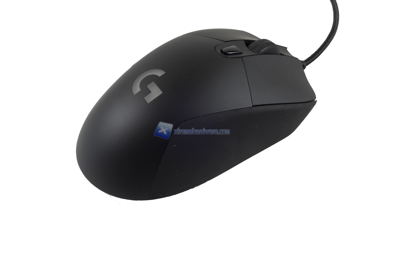 Partiamo dal dorso del mouse. Osserviamo la consueta gobba della serie G4xx di Logitech che rende l’impugnatura sul mouse comfortevole e naturale. Presente il logo della serie G che verrà retroilluminato del colore e con l’effetto che potremo scegliere tramite il software di gestione.