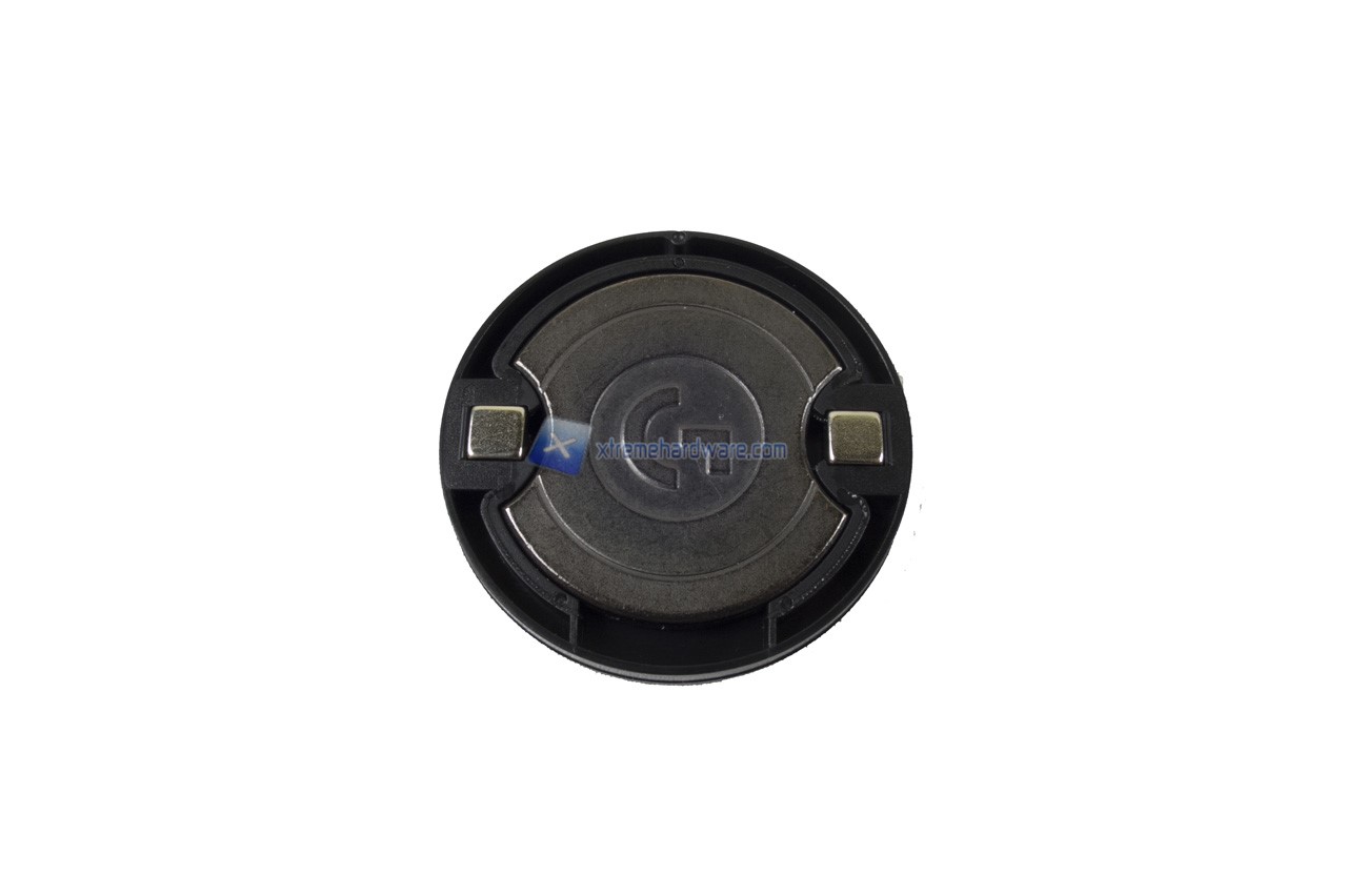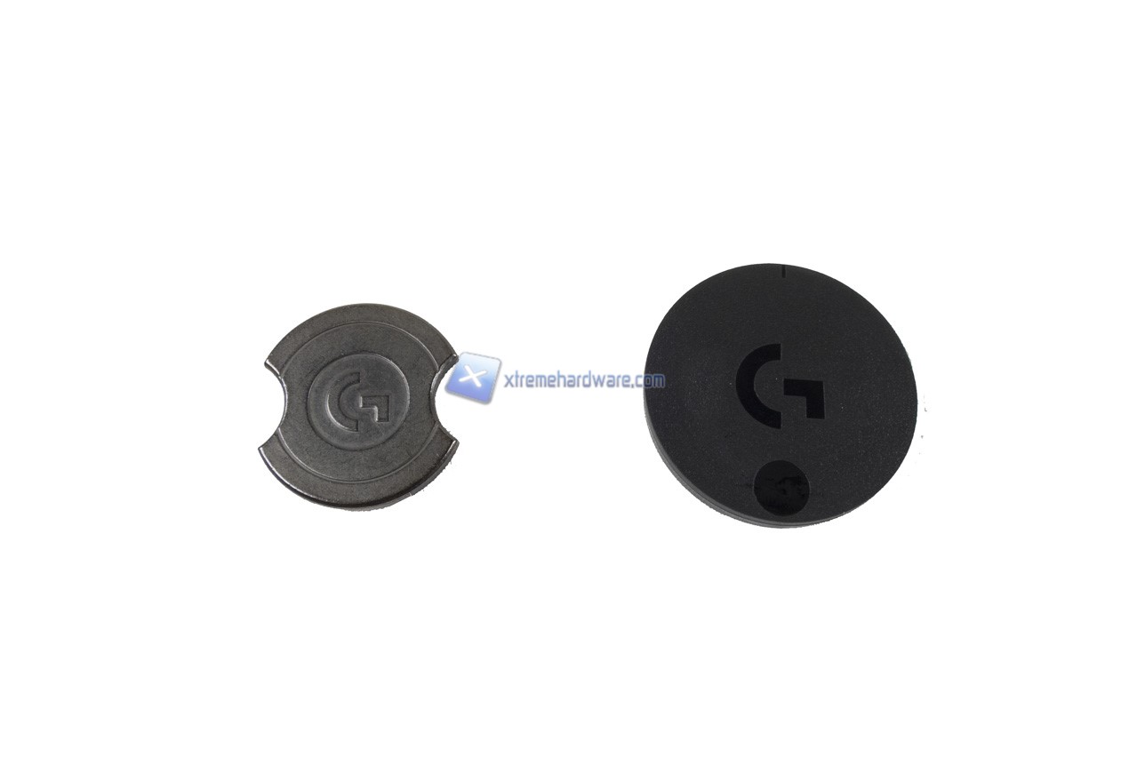 Nel Logitech G403 Prodigy è comunque presente anche il vano in cui potremo aggiungere o meno il peso aggiuntivo di 10 g. Vano facilmente accessibili essendo dotato di un coperchio con due inserti magnetici. Ci basterà spingere verso il basso nella parte contrassegnata per accedervi.