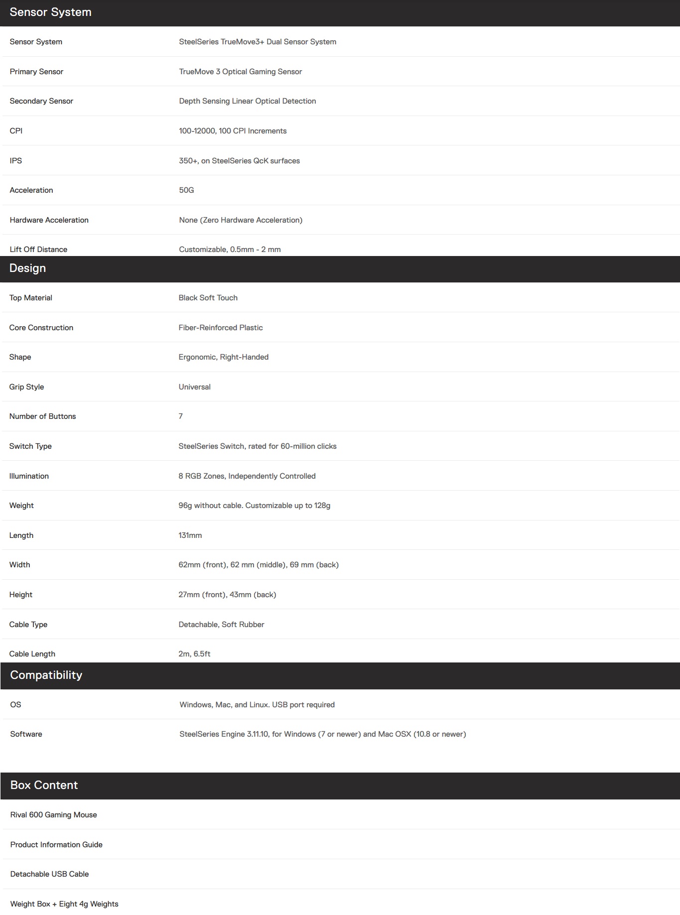 Procediamo dunque ad elencare brevemente le caratteristiche del mouse SteelSeries Rival 600.
