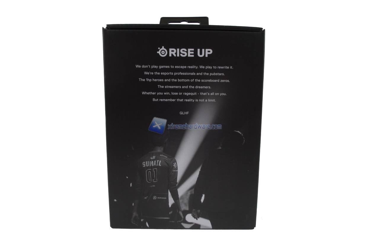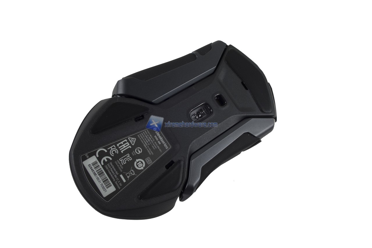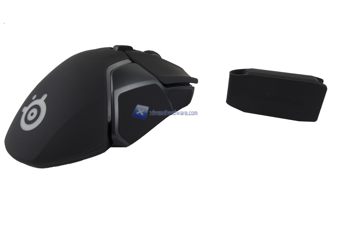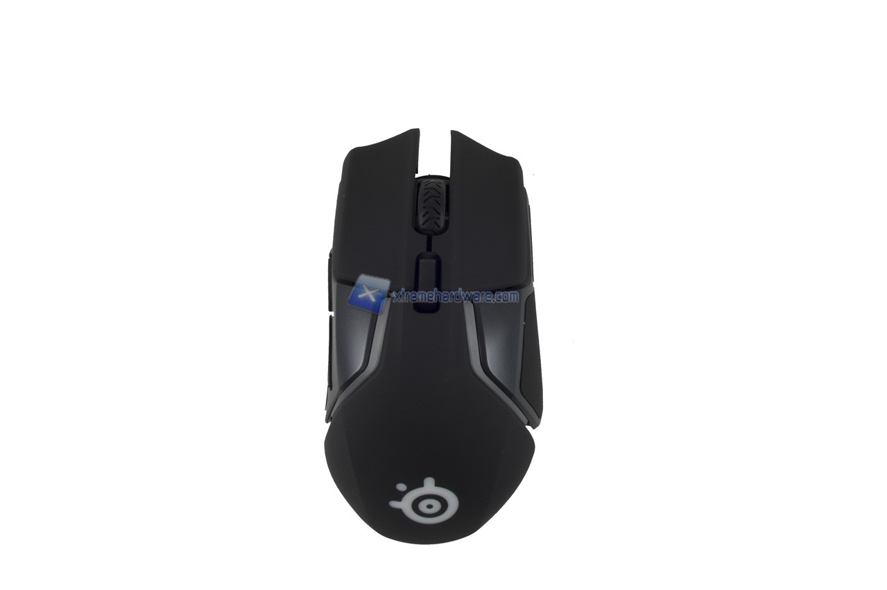 Partendo come di consueto dal dorso del mouse possiamo osservare il logo della SteelSeries.