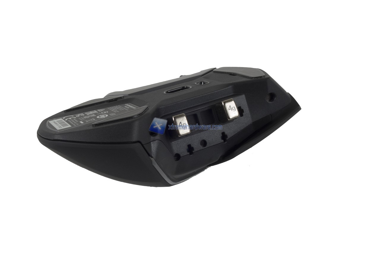 Prima di dare uno sguardo al software come di consueto e ad alcune immagini della retroilluminazione LED vi riportiamo alcune immagini del sistema di pesi e customizzazione del Rival 600. Come dicevamo incluso nel bundle presente un porta pesi in gomma con un totale di otto pesi da 4 g ciascuno per un totale di 32 g aggiuntivi.