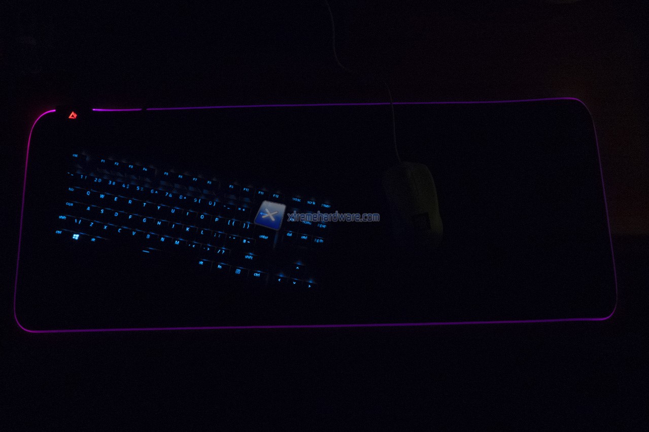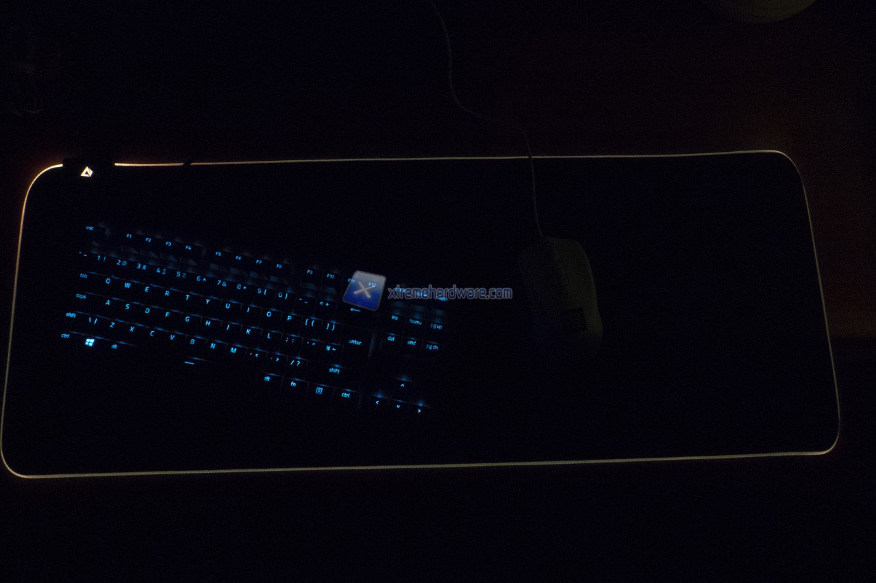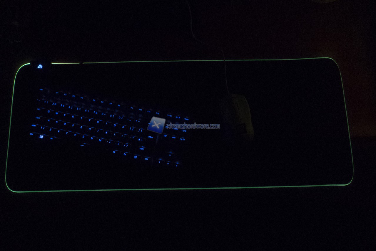 Possiamo anche notare la striscia LED che contorna l’intero perimetro del mousepad. Striscia ben ricamata alla superficie del mosuepad.