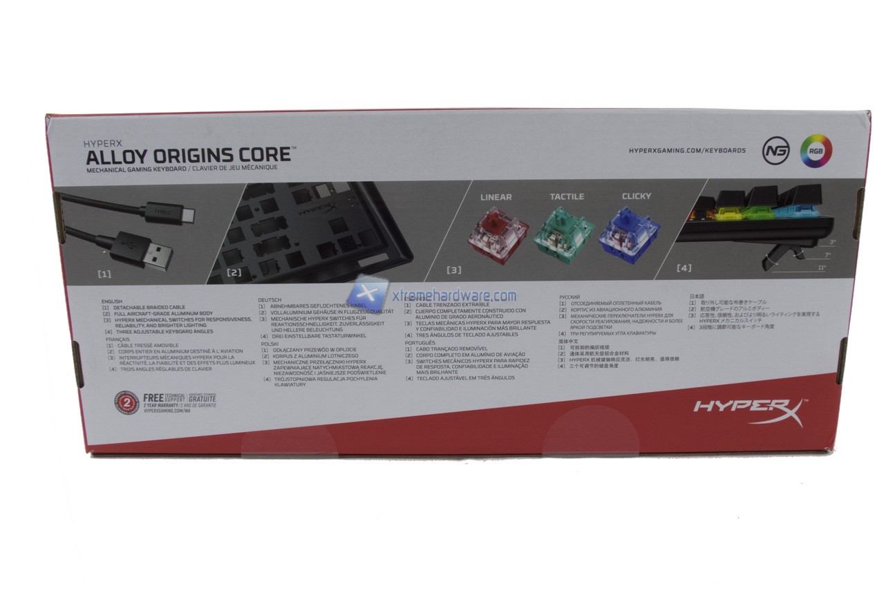 A seguire elenchiamo le caratteristiche tecniche della tastiera HyperX Alloy Origins Core.