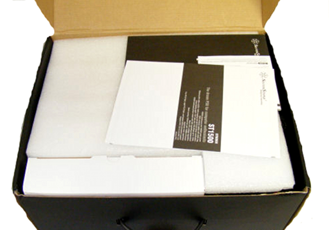 Il prodotto è imballato in una scatola ben rigida di cartone, che dona un aspetto molto elegante e signorile al prodotto. SilverStone punta alla semplicità e alla immediatezza di impatto per far focalizzare al cliente le caratteristiche innovative del prodotto. La confezione pesa ben 4.2Kg.