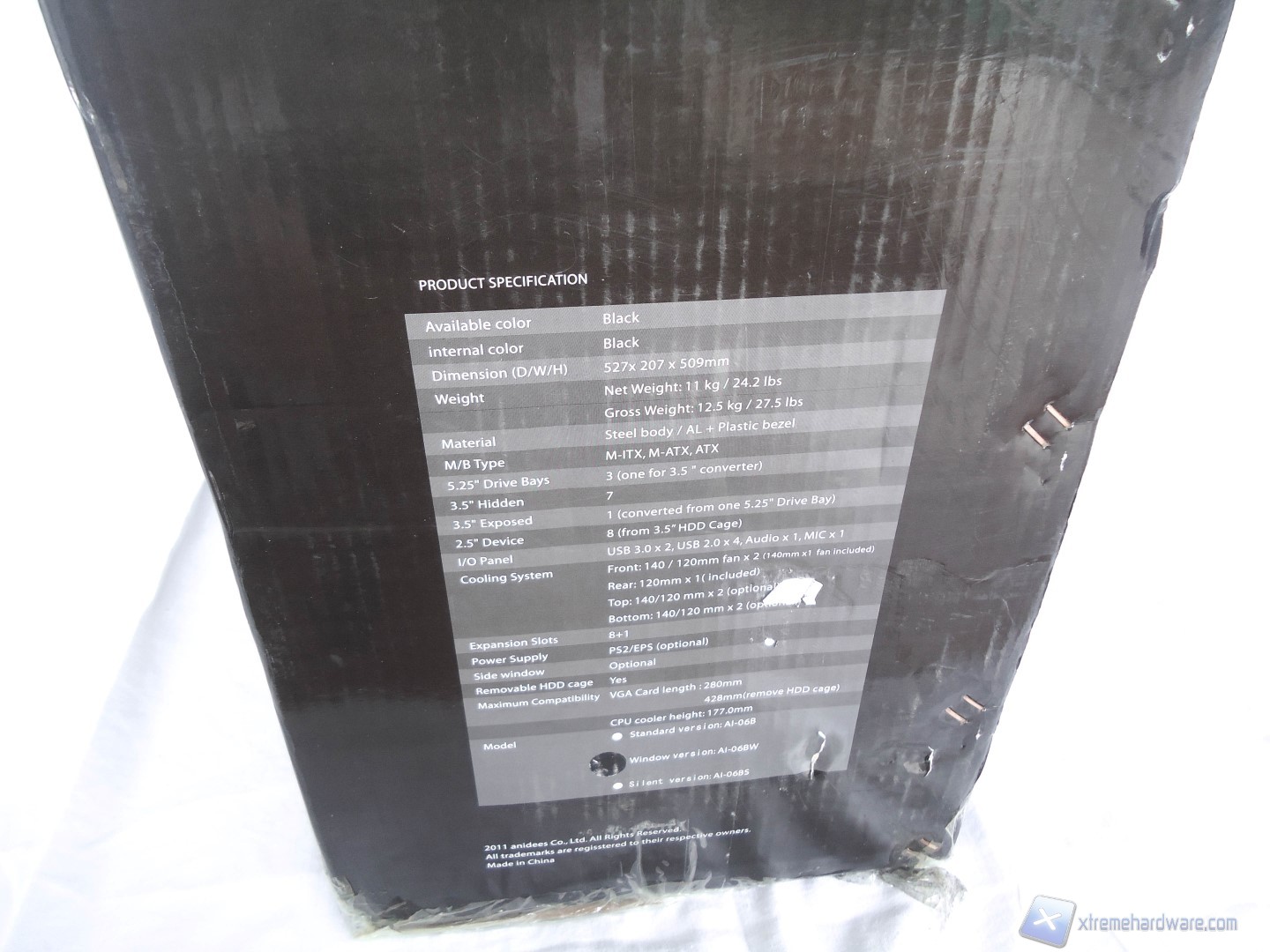 La confezione dell’Anidees AI6 è realizzata in cartone colorato ma non presenta nessuna immagine del prodotto su di essa. La parte frontale e laterale presentano solamente il nome del modello e il motto dell’azienda. I lati riportano invece le specifiche tecniche ed inoltre viene specificato il modello del case contenuto nella confezione.