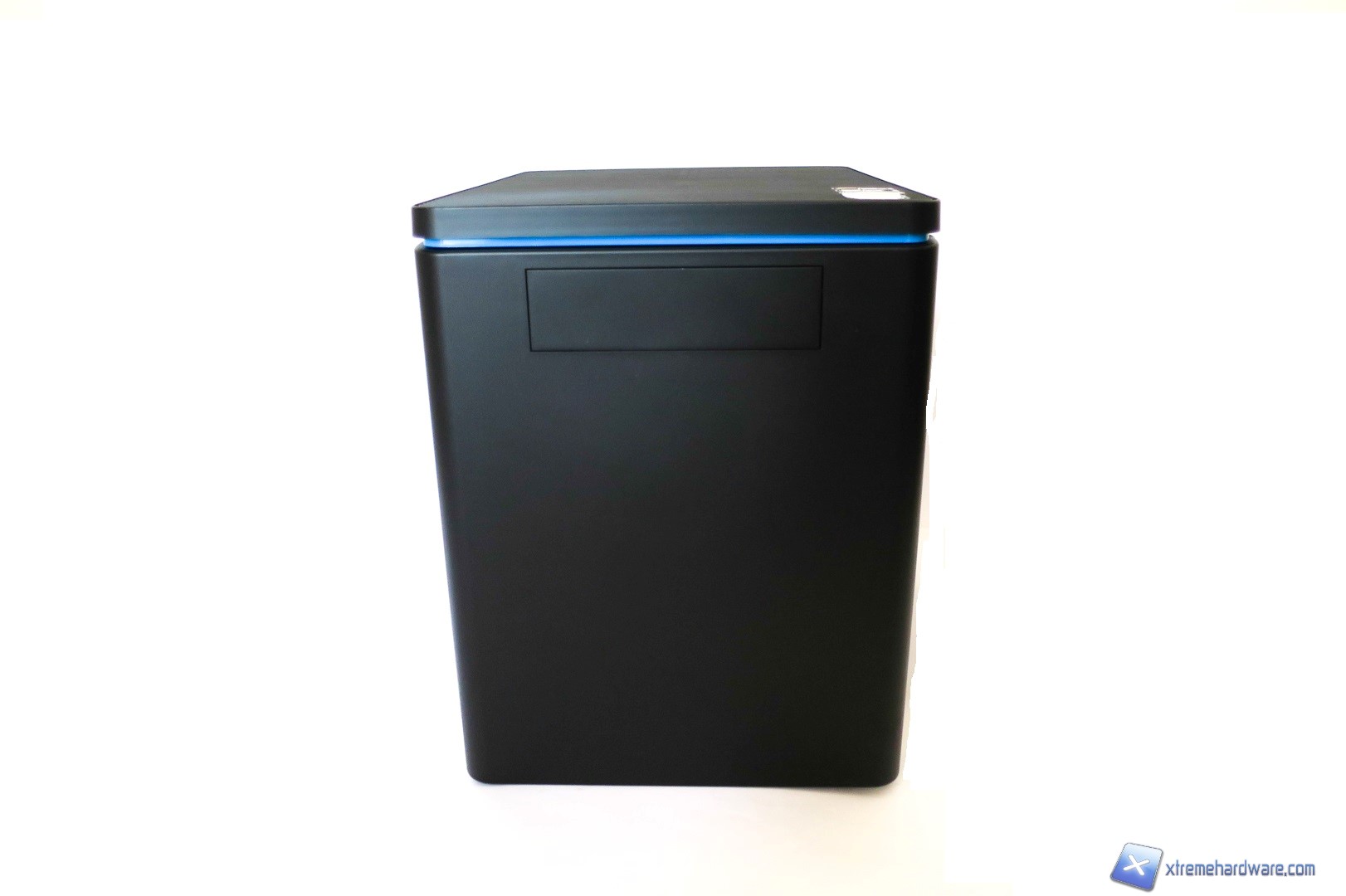 Partendo dalla parte frontale notiamo una superfice completamente liscia ed in colorazione nero opaco. Qui troviamo solo un ingresso per le unità da 5,25 pollici che in questo caso è coperto da un classico copri-bay in plastica. Non abbiamo nessun altro ingresso, feritoia o altro.