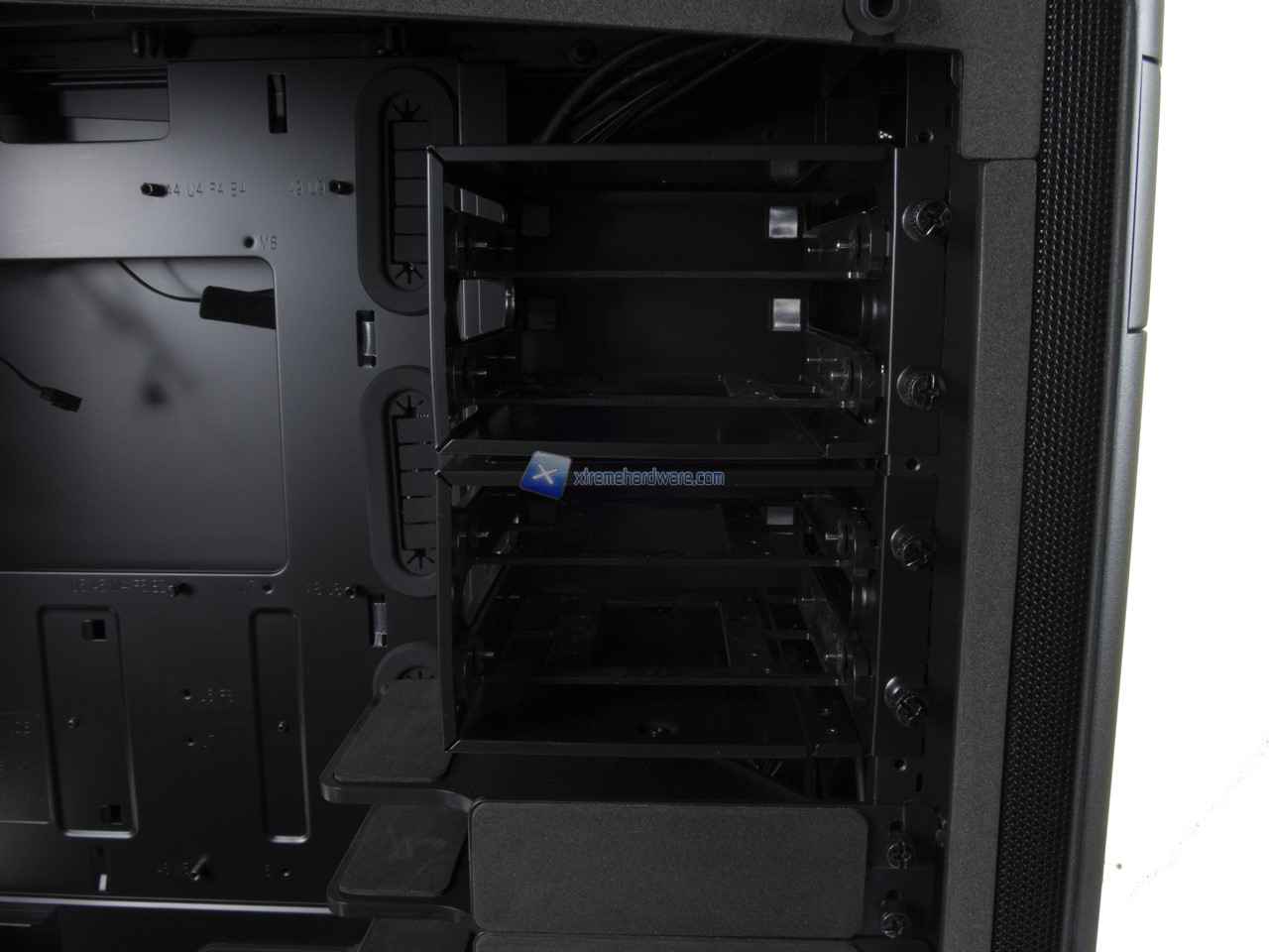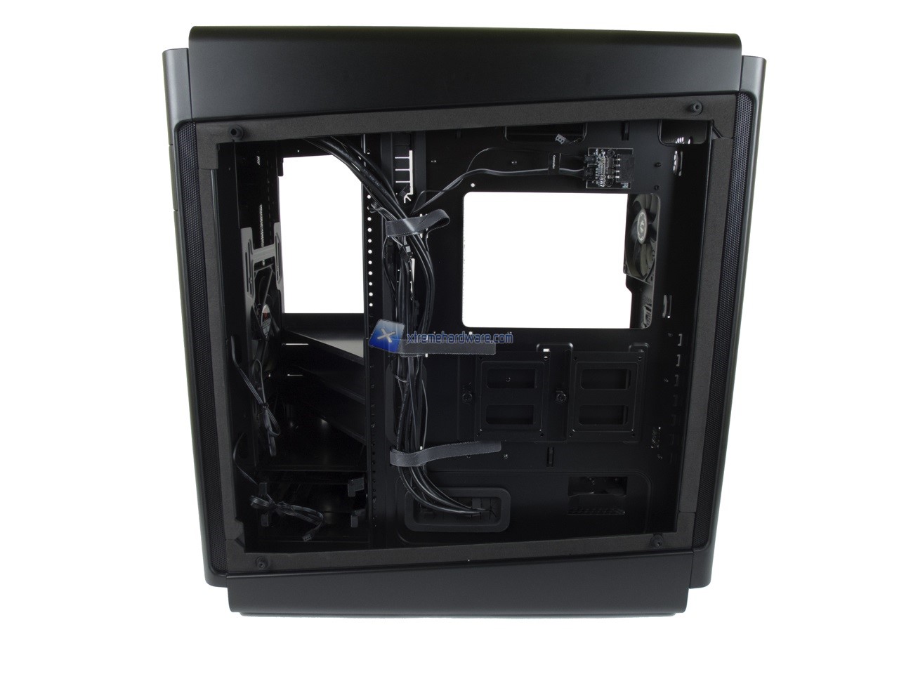 Spostandoci nel lato di destra possiamo osservare il classico Tray della scheda madre contornato da diversi fori per il passaggio dei cavi.