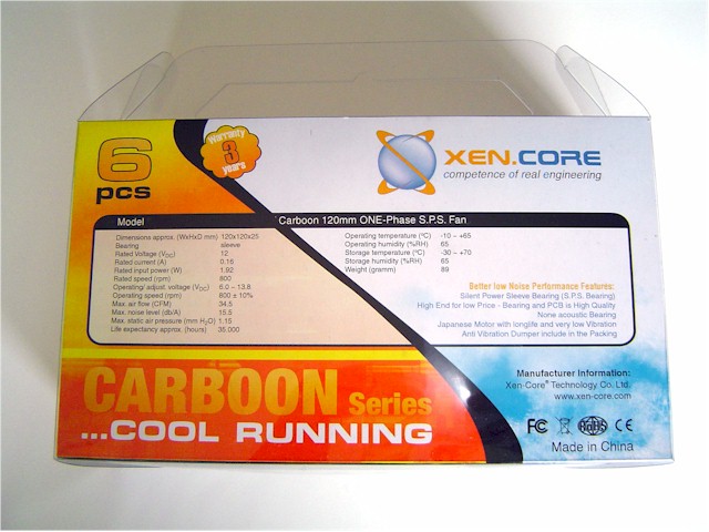 Le Carboon hanno uno stile semplice e gradevole allo stesso tempo, con la scocca in plastica bianca e la ventola azzurra semitrasparente. I tre fili del connettore a 3 pin sono ricoperti da una guaina anch'essa bianca.