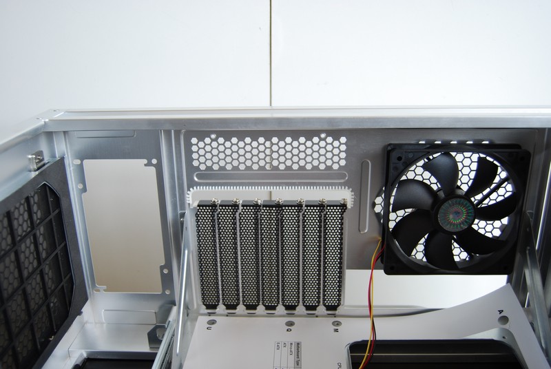 In questo modo è possibile assemblare comodamente i componenti fuori dal case e successivamente inserire il piatto con tutti componenti all'interno. Il piatto comprende anche la ventola posteriore e la parte posteriore del case che funge da supporto per le schede pci e pci-express. Tutto sommato quindi può quasi funzionare come un banchetto.