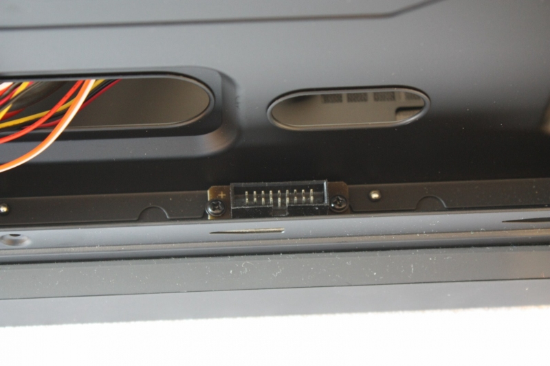 Il pannello laterale destro è privo anch'esso di griglie o ventole di aereazione, ma presenta al suo interno un connettore, al quale andranno connessi l'interruttore per i led delle ventole, il led del logo ed i led delle ventole.