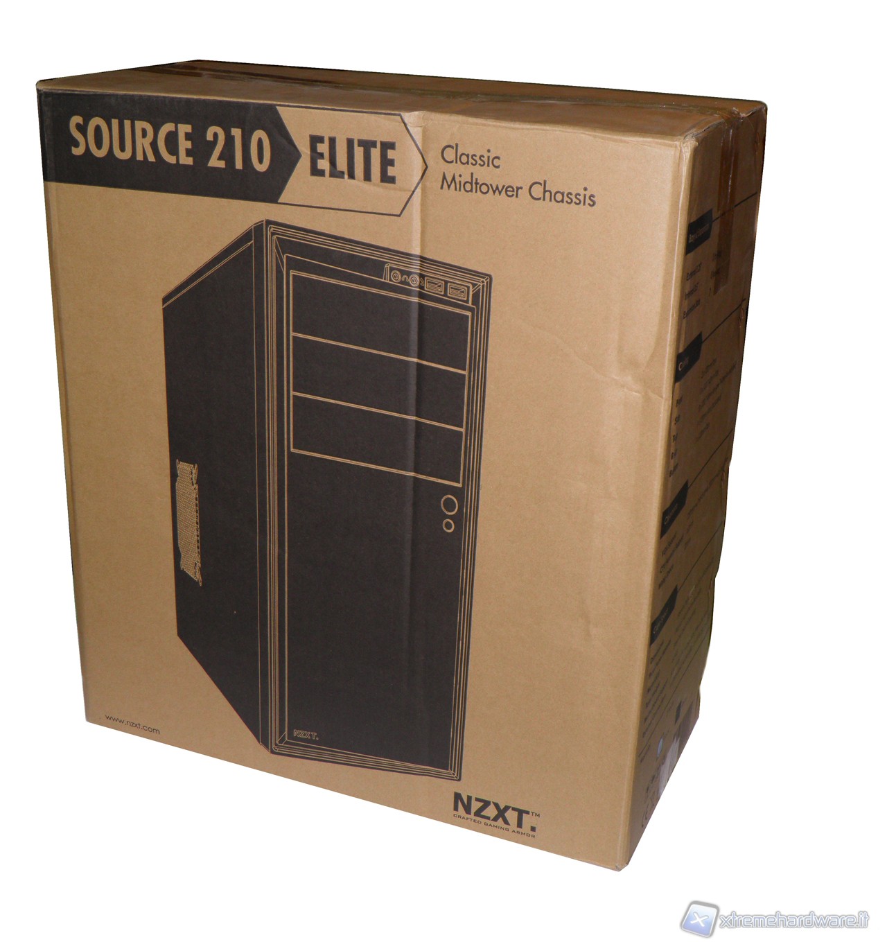 La confezione con cui si presenta il prodotto di NZXT è molto semplice, in cartone marrone con raffigurato il case e, cosa importante, le caratteristiche del medesimo.