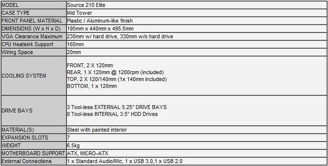 All'interno della scatola troviamo il case, su cui è già montato praticamente tutto (le due ventole, una da 120mm e una da 140mm, le staffe di fissaggio tool-less) e un sacchettino contenente le viti per l'assemblaggio. Il bundle è praticamente assente. Le dimensioni sono di 195mm x 440mm x 495mm rendono questo case molto compatto, ma allo stesso tempo limitano lo spazio interno, impedendo ad esempio l’installazione di CPU cooler particolarmente voluminosi, con altezza superiore a 160mm.