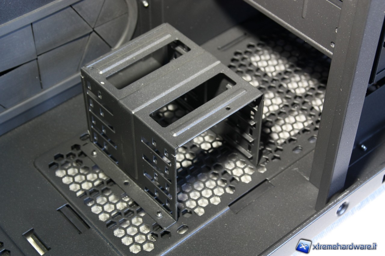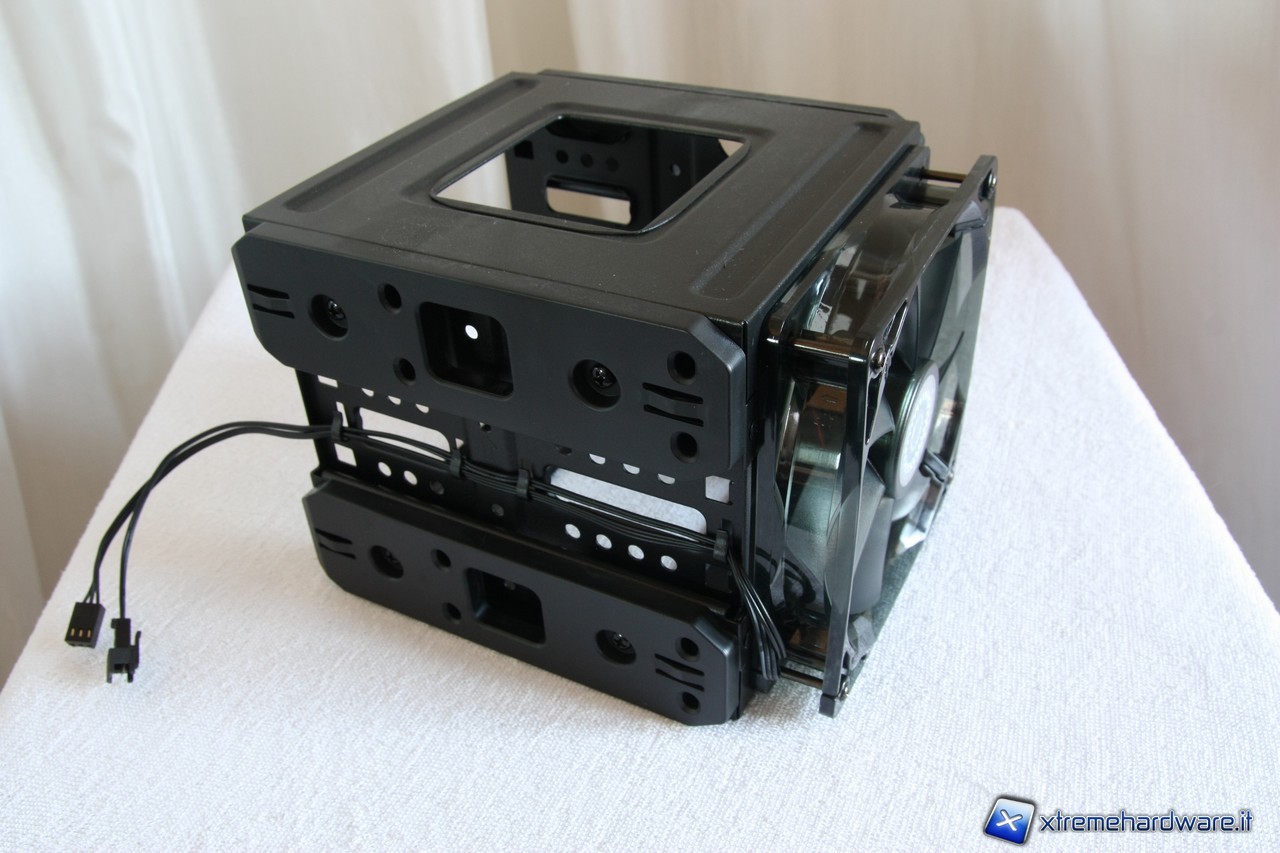 A questo punto potremo rimuovere i due cestelli per gli hard disk, segnaliamo anche qui l'estrema cura dei particolari, i fili delle ventole sono infatti fissate alla struttura del cage.