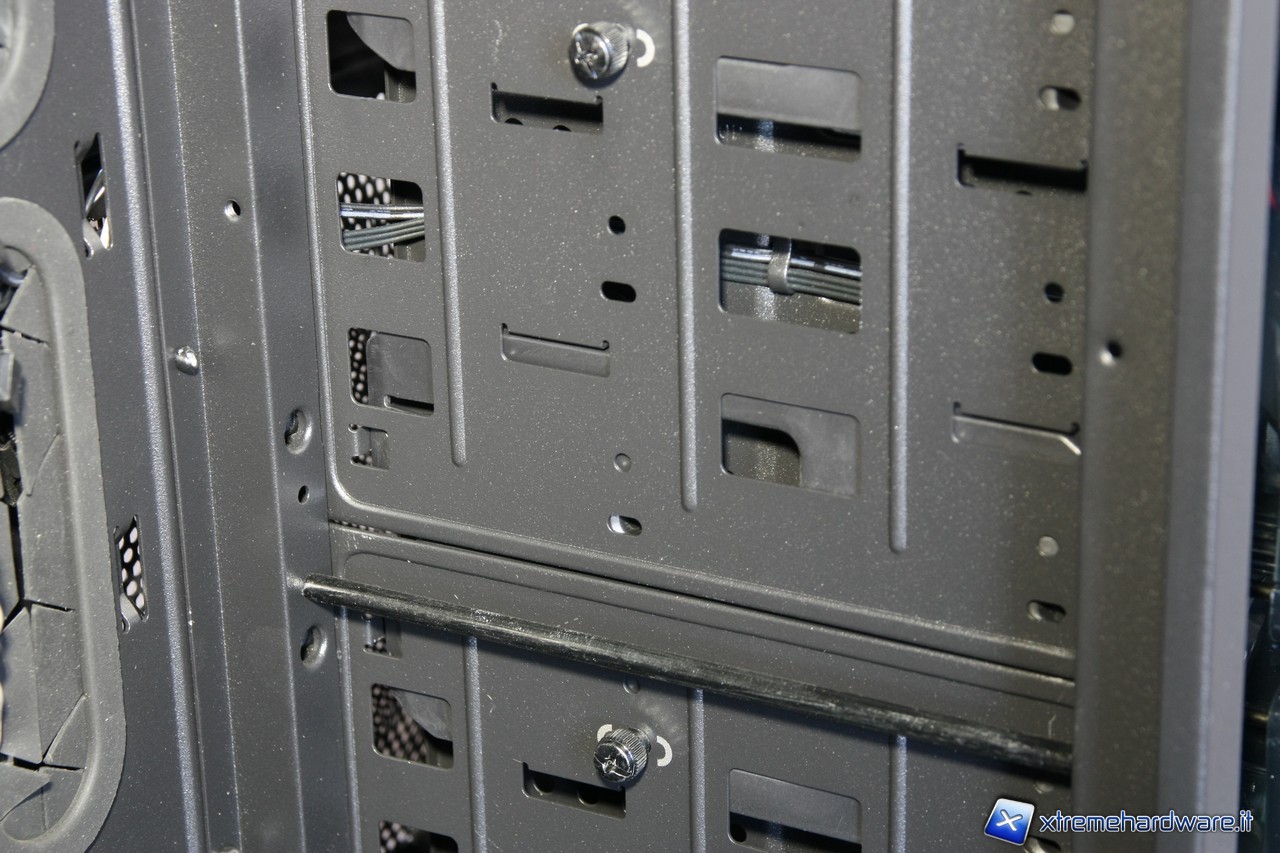 La ventilazione interna merita una riflessione,sicuramente sarà quasi obbligatorio adottare due ulteriori ventole per massimizzare la ventilazione interna del case,il nostro consiglio è quello di disporle internamente nel fondo del case,sfruttando così anche la presenza dei filtri antipolvere. Lasciando il Trooper così come si presenta all’acquisto, non avremo ventole che immetteranno aria all'interno del cabinet. Girando i supporti per gli hard disk, la situazione sicuramente migliorerà, dipendemente comunque da quante unità abbiamo intenzione di montare. Nel caso infatti in cui gli hard disk siano meno di 3, potremo girare uno dei due sopporti, beneficiando quindi di un minimo di ventilazione in ingresso che gioverà sicuramente ai nostri componenti interni.