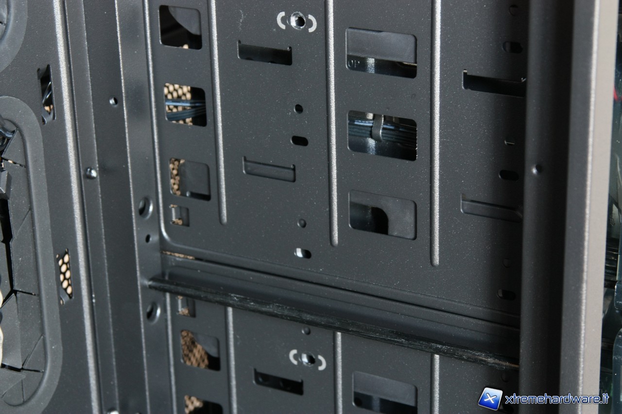 Eccellente il sistema di cablaggio, numerosi "passaggi" per nascondere i cavi sono stati posizionati sul piatto della scheda madre, ricoperti da una guarnizione in plastica, che donerà un tocco di eleganza in più. Ci ha colpito particolarmente il foro di passaggio in corrispondenza dell’alimentatore, davvero molto ampio.