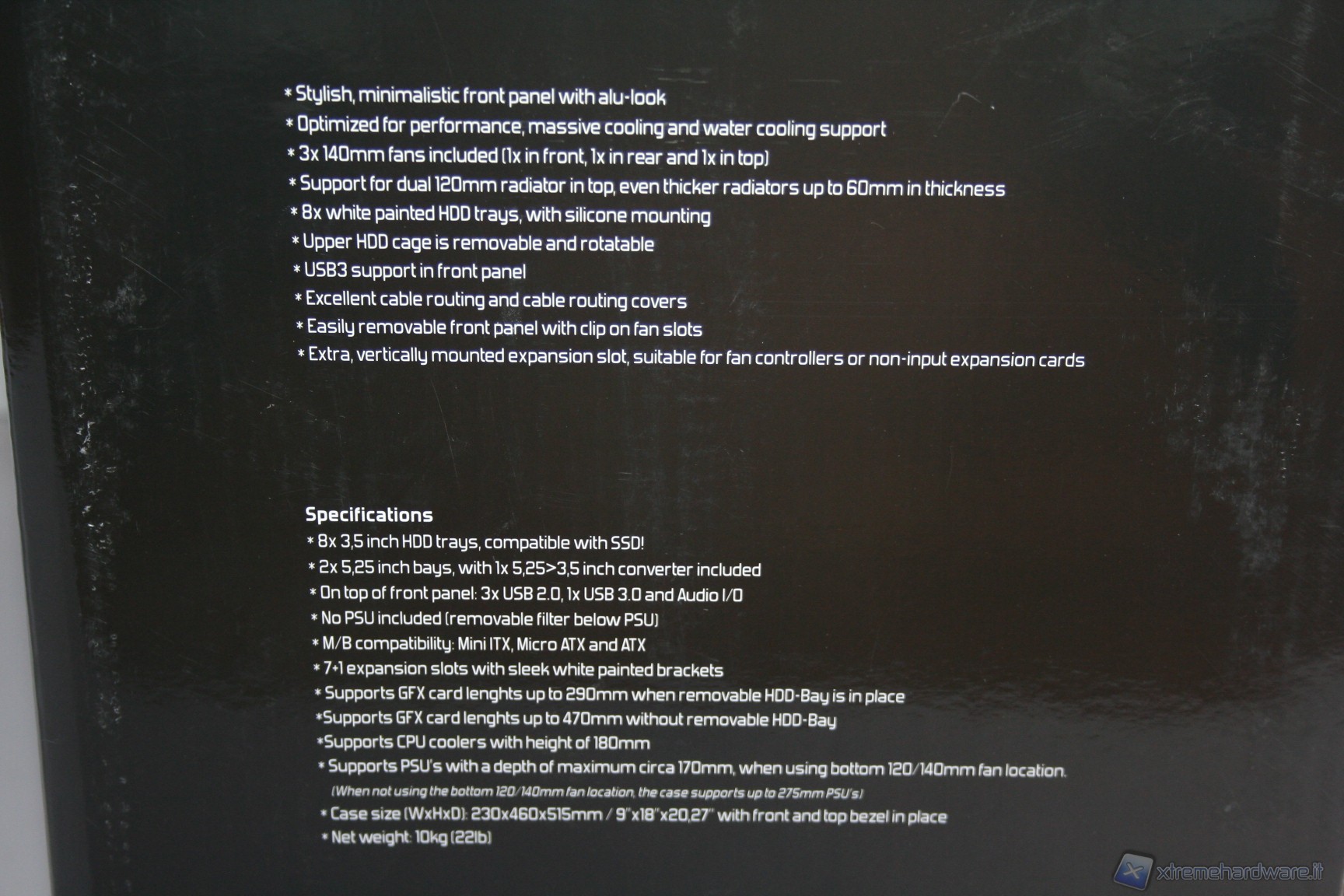 - 3x ventole da 140 mm incluse (una nella parte anteriore, una posteriore ed una in alto)