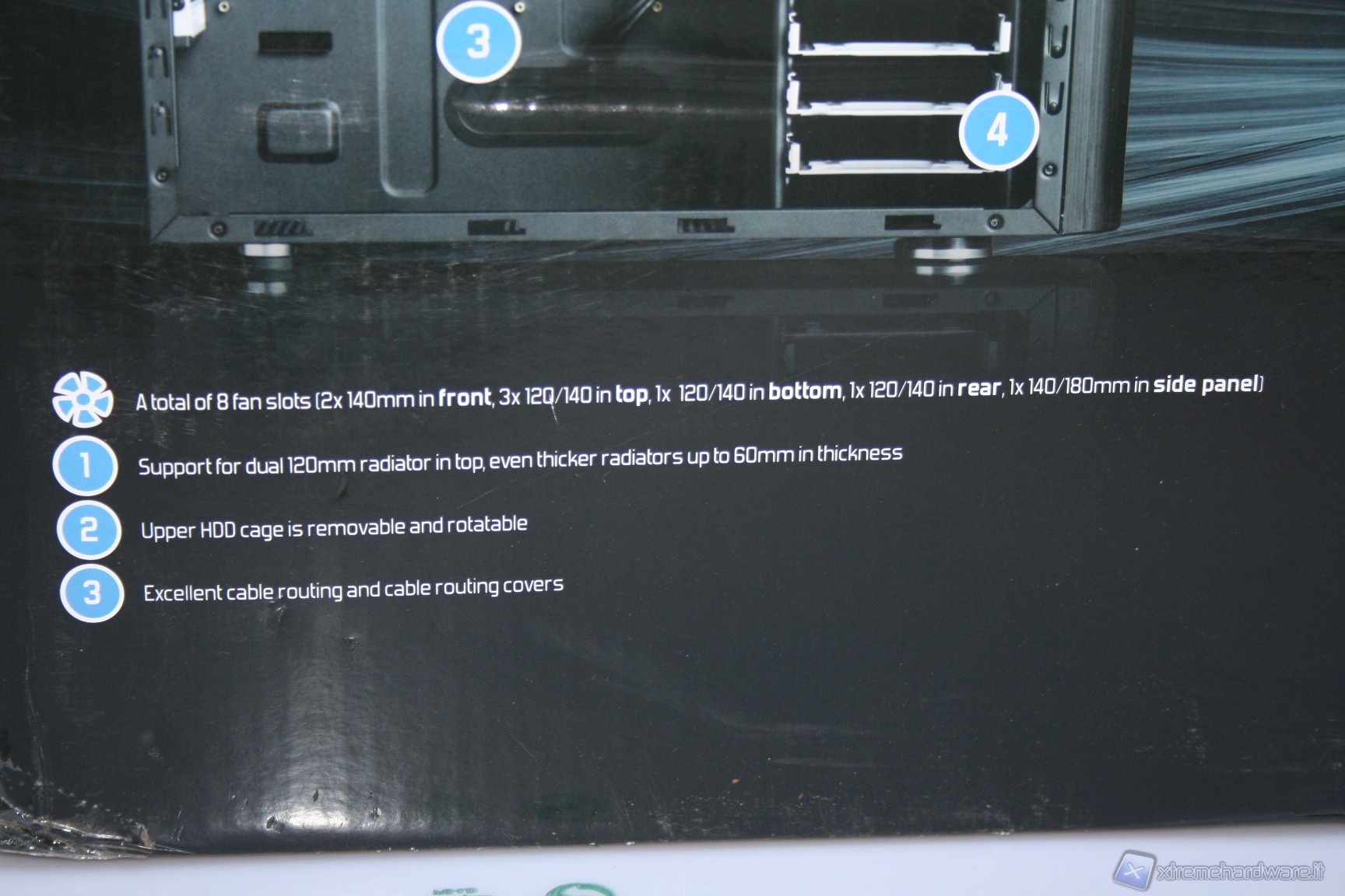 - C’è il supporto per un radiatore doppio lungo 240 mm nella parte superiore, radiatori spessi anche fino a 60 mm