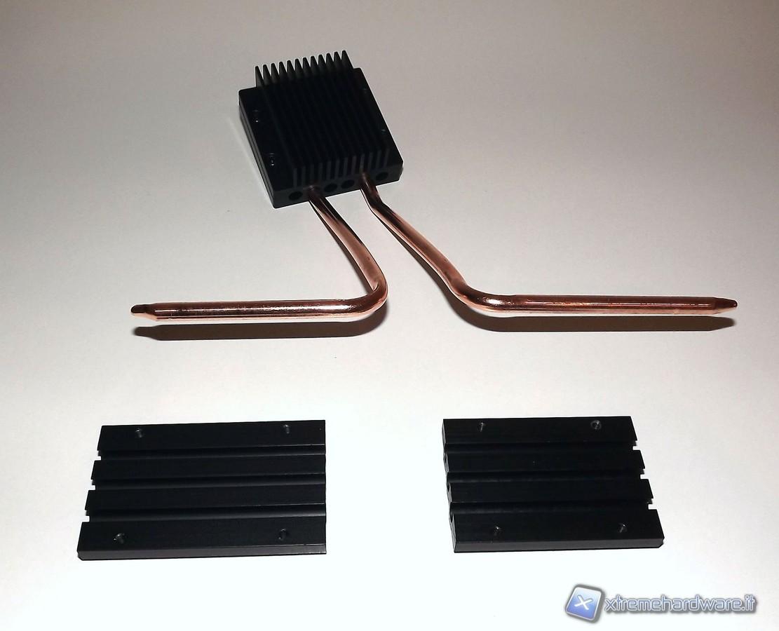 I due Heatsink Connector Block si sganciano dal pannello laterale tramite 8 viti, vedremo meglio nelle pagine relative all'assemblaggio. In questo modo è possibile vedere da più vicino le 3 parti in cui è composto.