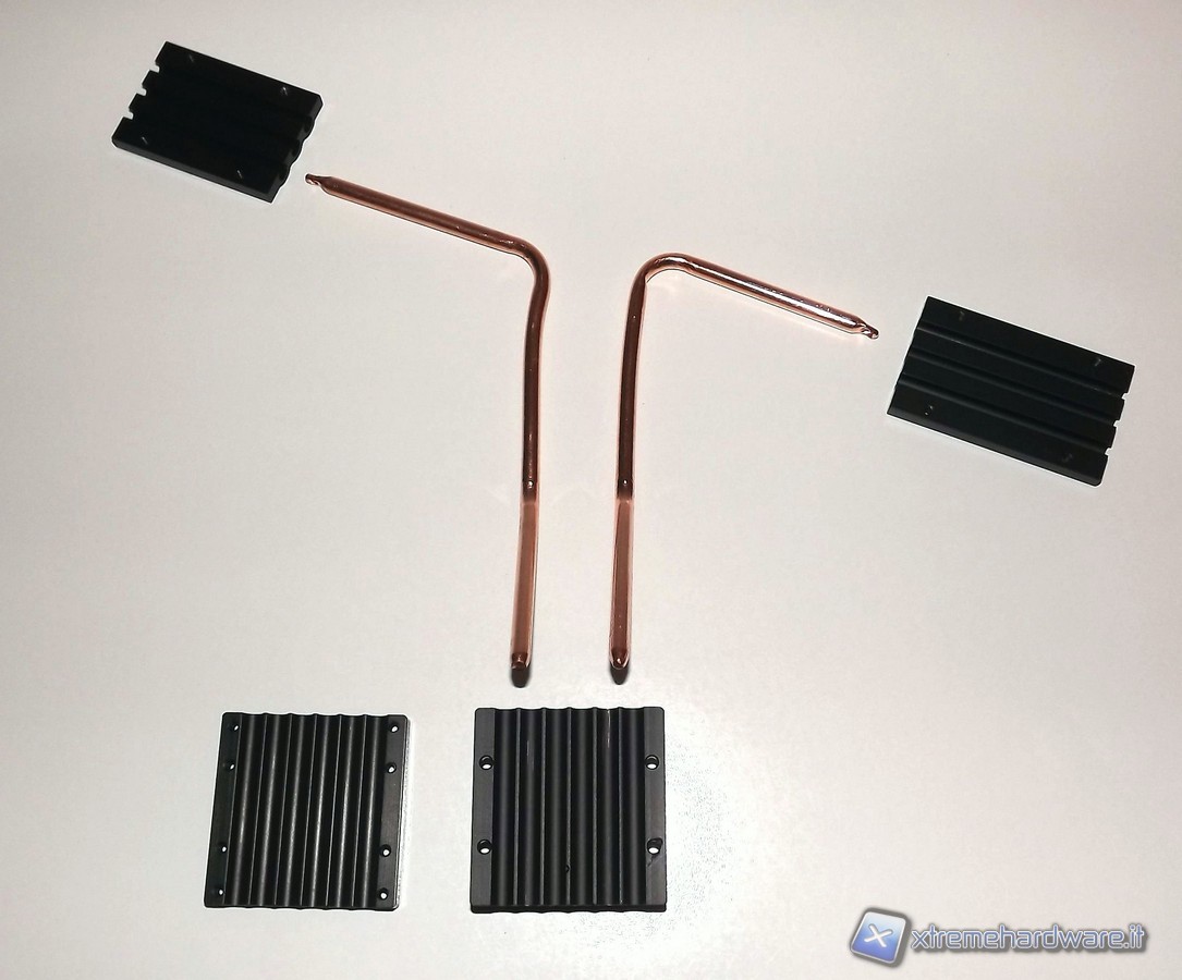 Le due Heat-pipe sono costruite in rame, hanno una forma cilindrica e sono cave all'interno. All'interno vi è piccola quantità di fluido refrigerante come acqua, etanolo o mercurio; il resto del tubo è riempito dal vapore del liquido, in modo che non siano presenti altri gas. Il compito delle Heat-pipe è trasferire calore da un estremo (caldo) all'altro (freddo) del condotto, per mezzo dell'evaporazione e condensazione del refrigerante il tutto senza alcun intervento dall'esterno ma attraverso un processo naturale molto rapido. Questo tipo di condotti vengono largamente adottati in molti sistemi di raffreddamento.